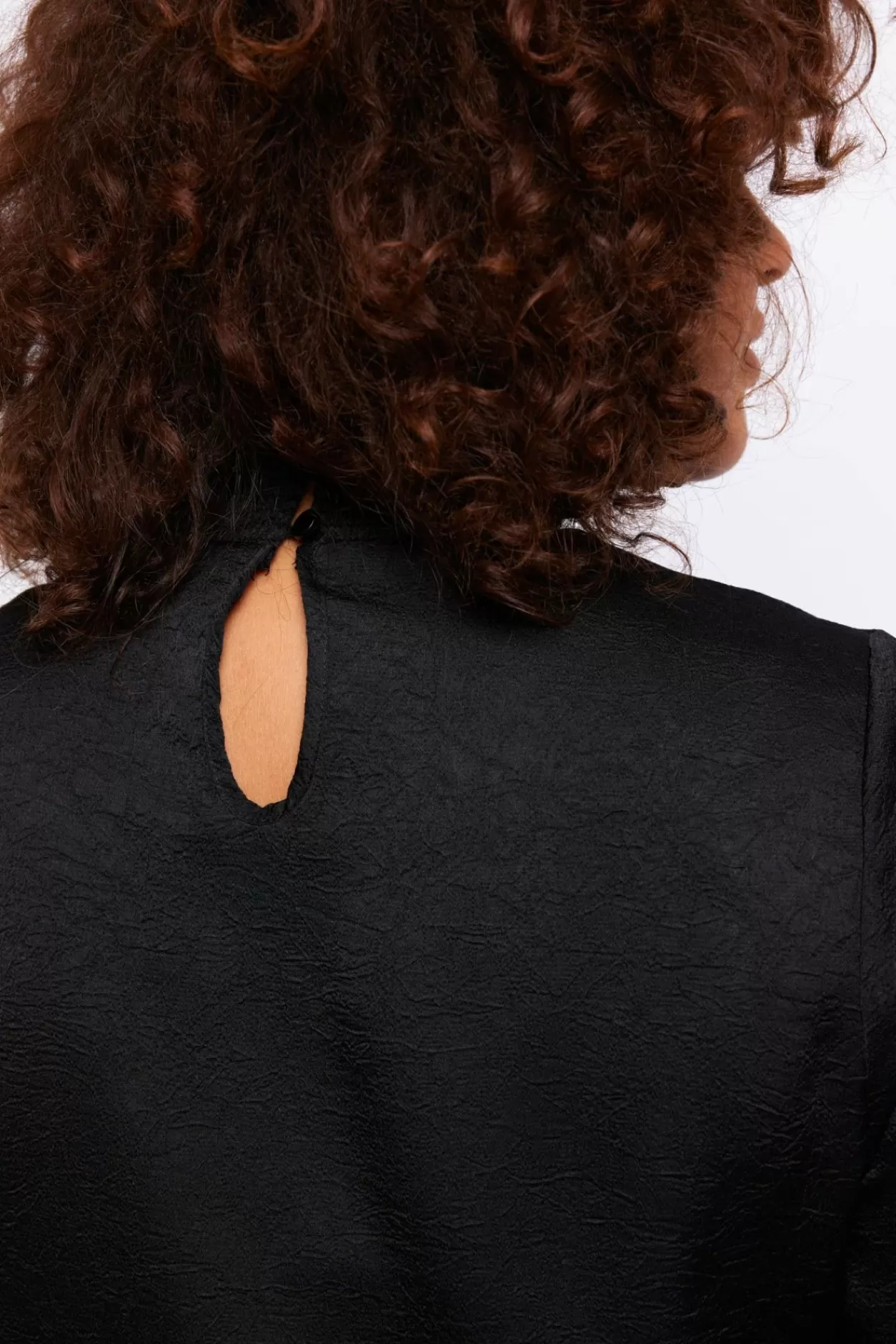 Ontdek Moeiteloze Elegantie Met Onze Elly Top. Met Een Lage Col, Korte Mouwen En Een Stijlvolle Zijden Look, Voegt Deze Top Een Vleugje Verfijning Toe Aan Je Outfit. Perfect Voor Diverse Gelegenheden, En Een Subtiele Knipoog Naar Het Seizoen.Model Is 173 Cm En Draagt Een Maat 44.