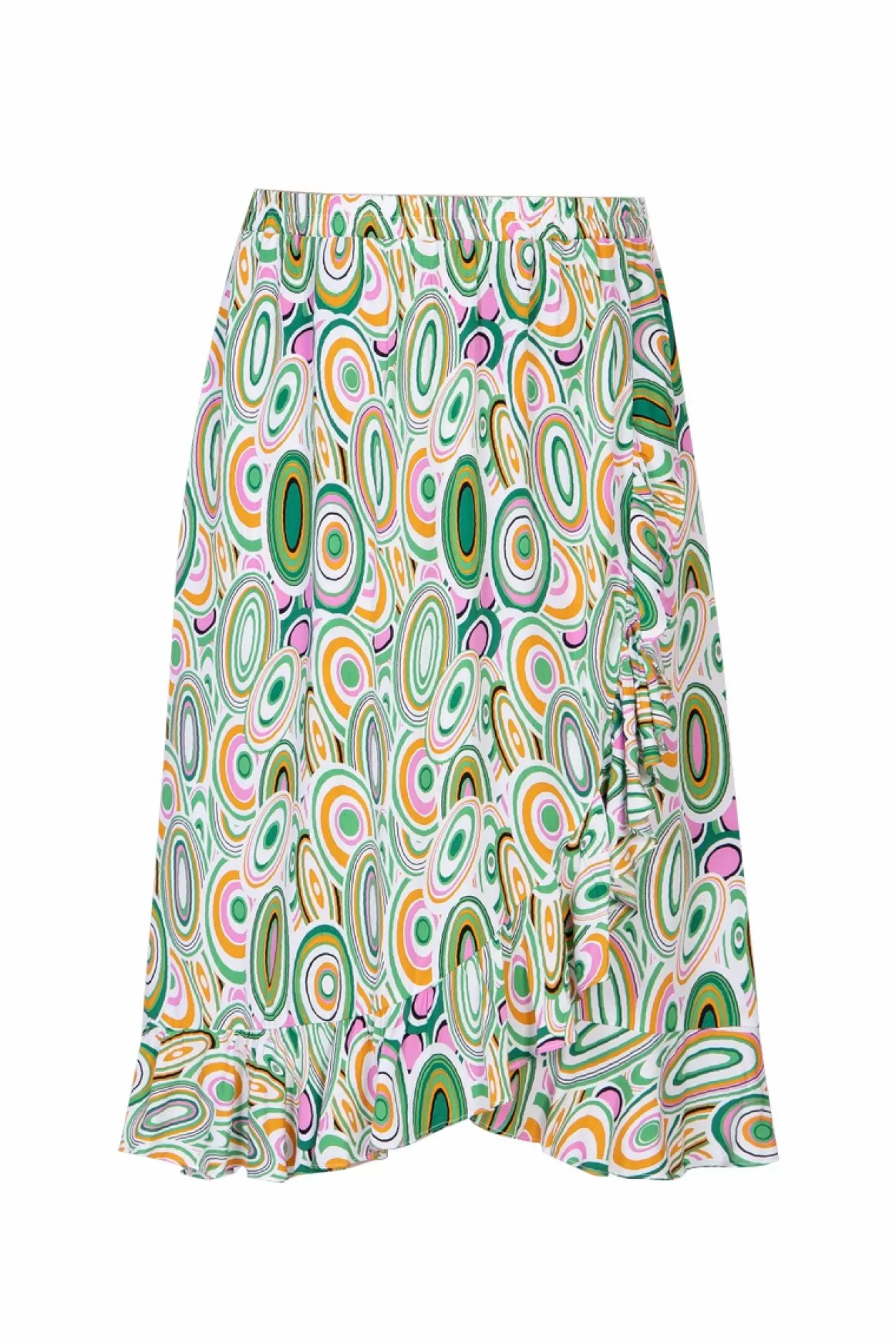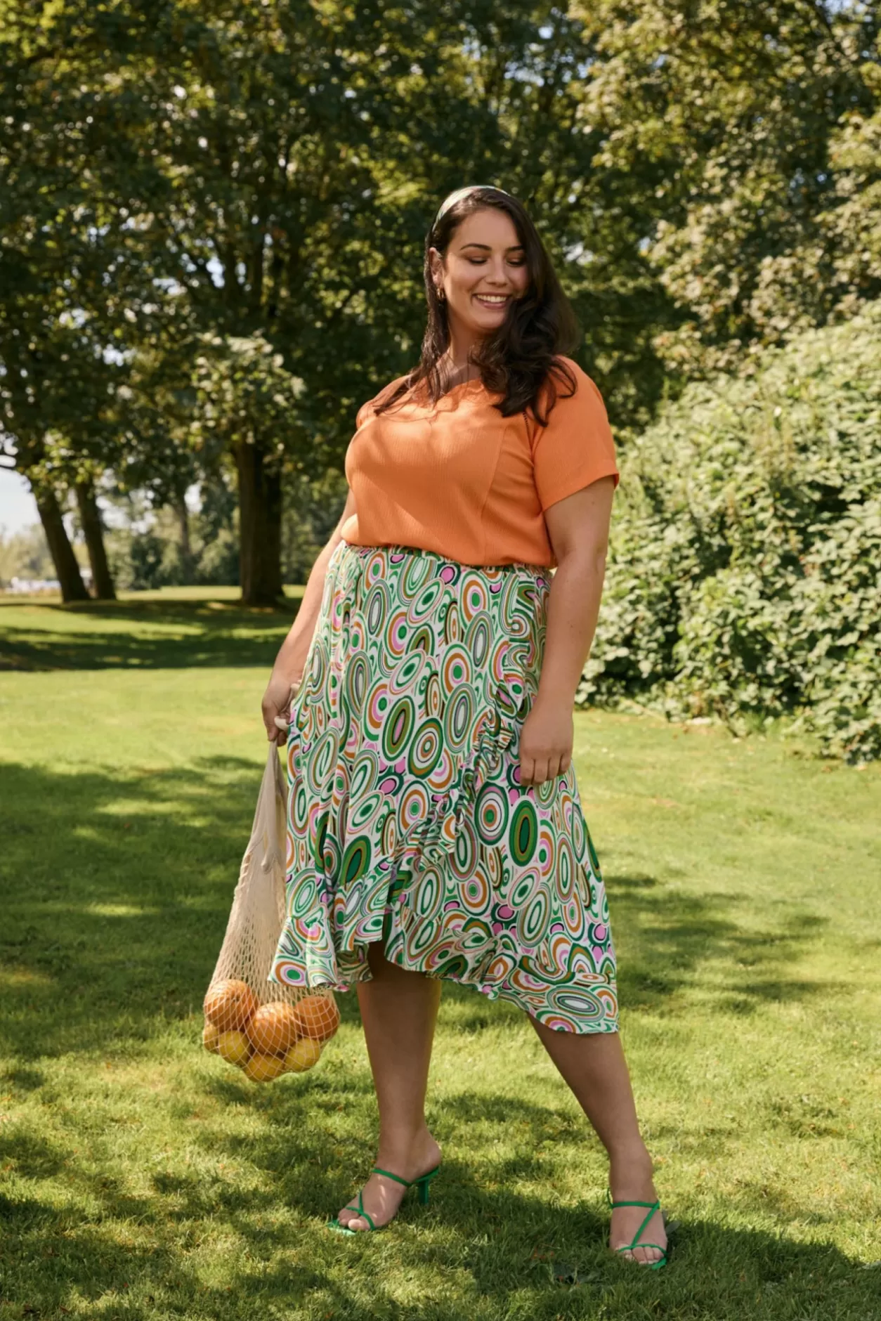 De Jolijn Rok Is Een Kleurrijk Statement Met Jaren ’70-Print En Een Flatterend Overslagmodel. Hiermee Voegt De Jolijn Rok Een Vleugje Vintage Glamour Toe Aan Elke Gelegenheid.