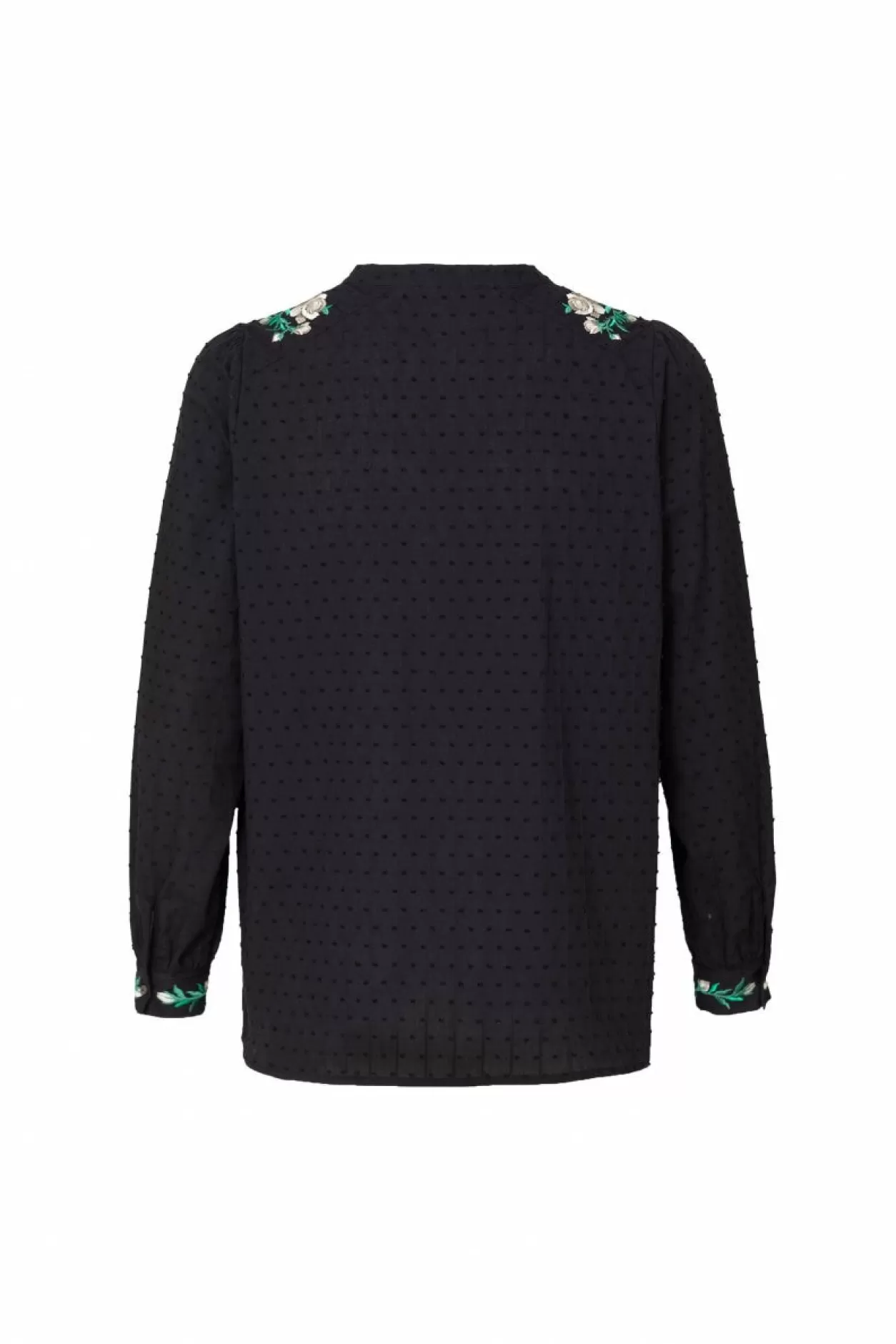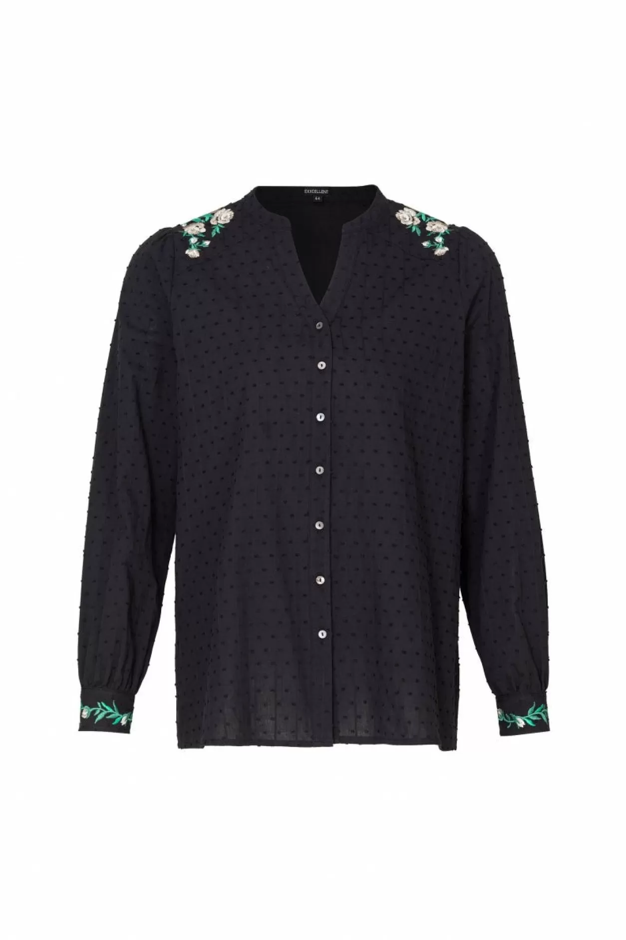 Ontdek De Winter Met Onze Romantische Resa Blouse, Waar De V-Hals En Knoopsluiting Samenkomen Voor Een Tijdloze Uitstraling. De Geborduurde Bloemen Op De Schouders En Mouwen Voegen Een Vleugje Artistieke Charme Toe Aan Deze Romantische Blouse. De Subtiele Stippen Textuur Van De Stof Creëert Een Unieke Diepte, Waardoor Deze Blouse Een Veelzijdige Keuze Is Voor Elke Gelegenheid.Model Is 173 Cm En Draagt Een Maat 44.