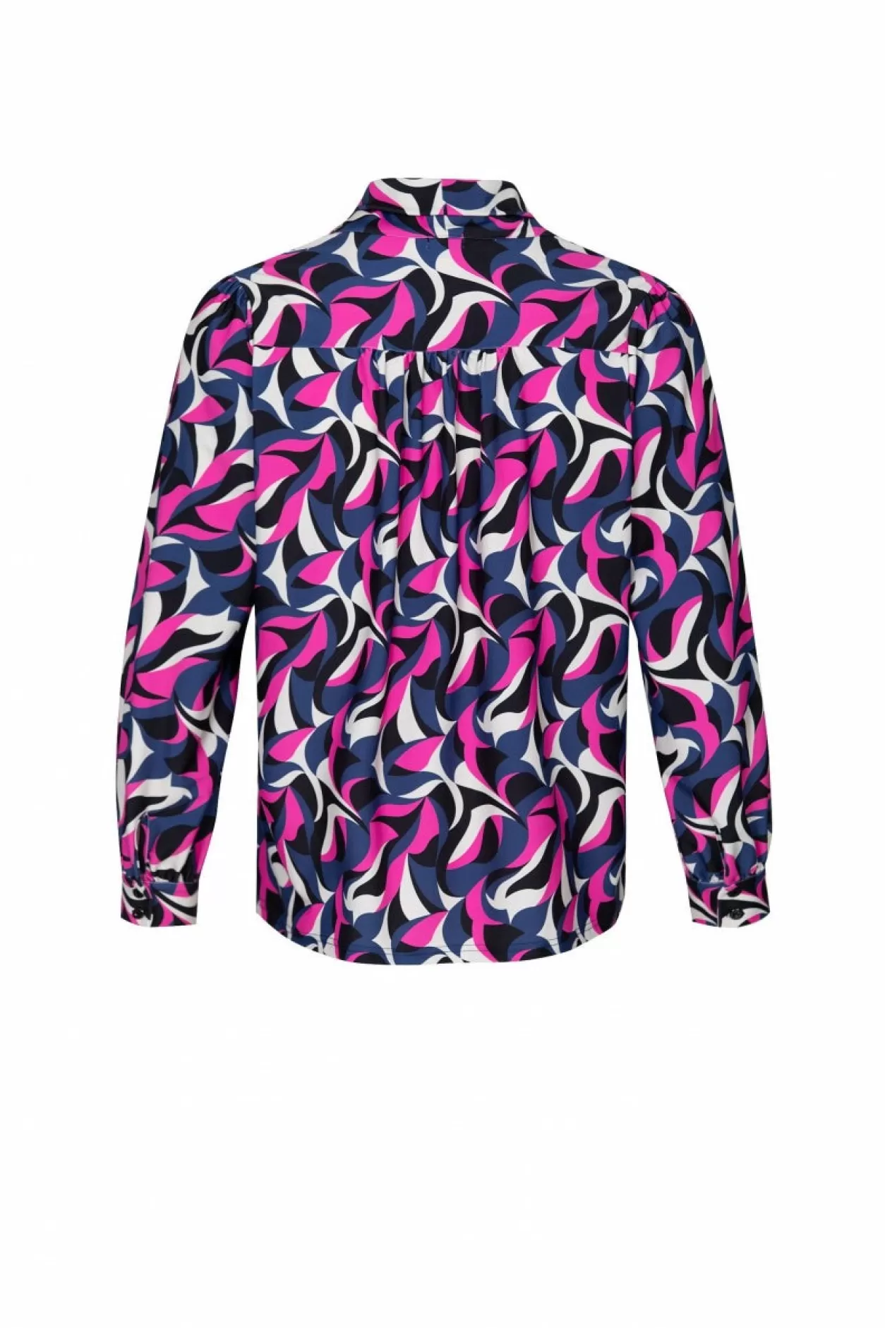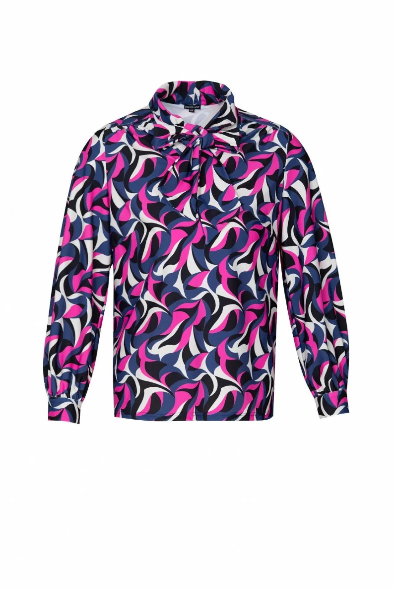 Omarm De Betoverende Sfeer Van De Winter Met Onze Abstract Geprinte Thera Blouse, Verfraaid Met Een Elegante Strikkraag. Een Creatieve Aanvulling Op Je Winterse Garderobe Die Moeiteloos Klasse En Warmte Uitstraalt.Model Is 173 Cm En Draagt Een Maat 44.