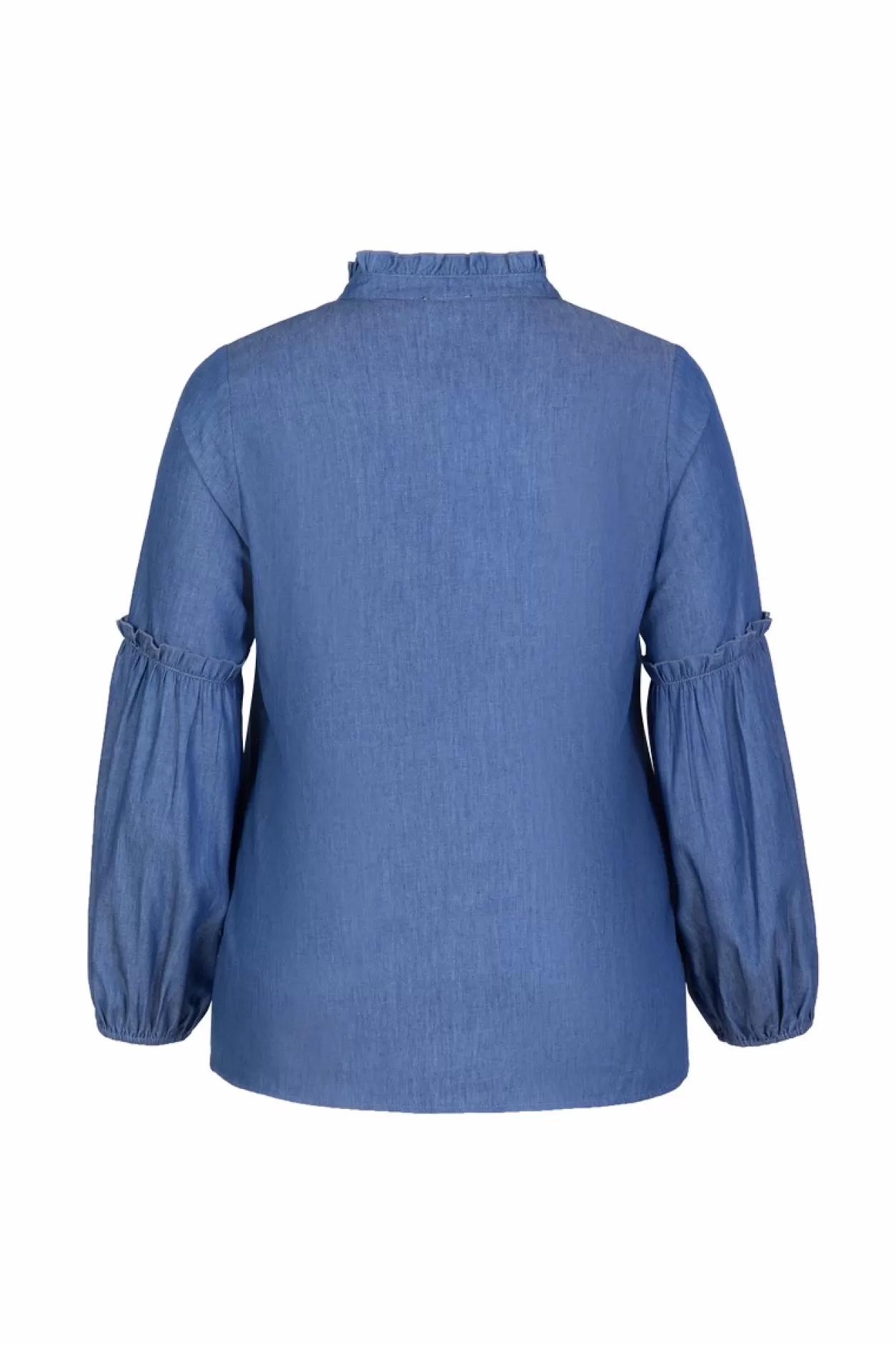 Dompel Jezelf Onder In Casual Chic Met Onze Ginny Blouse, Een Verfijnd Stuk Met Een Subtiele Denim Look En Prachtige Geb…