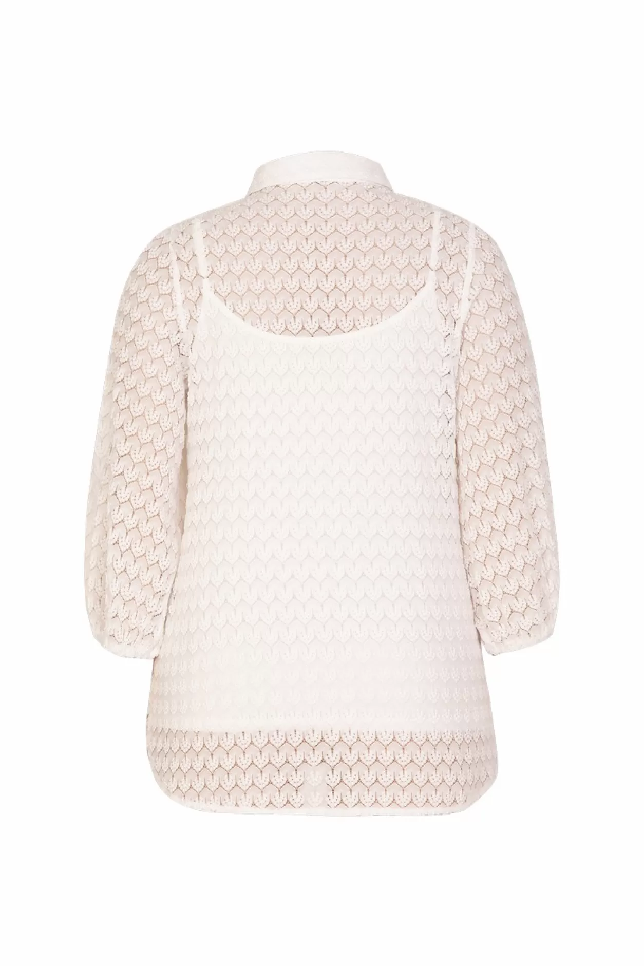 Omarm Het Voorjaar Met Onze Babette Blouse, Compleet Met Een Bijpassend Singlet En Verfijnd Gehaakt Motief. De Transparante Mouwen En Het Subtiele Design Voegen Een Vleugje Romantiek Toe Aan Je Voorjaarsgarderobe, Terwijl Het Singlet Zorgt Voor De Perfecte Balans Tussen Onthulling En Bedekking.