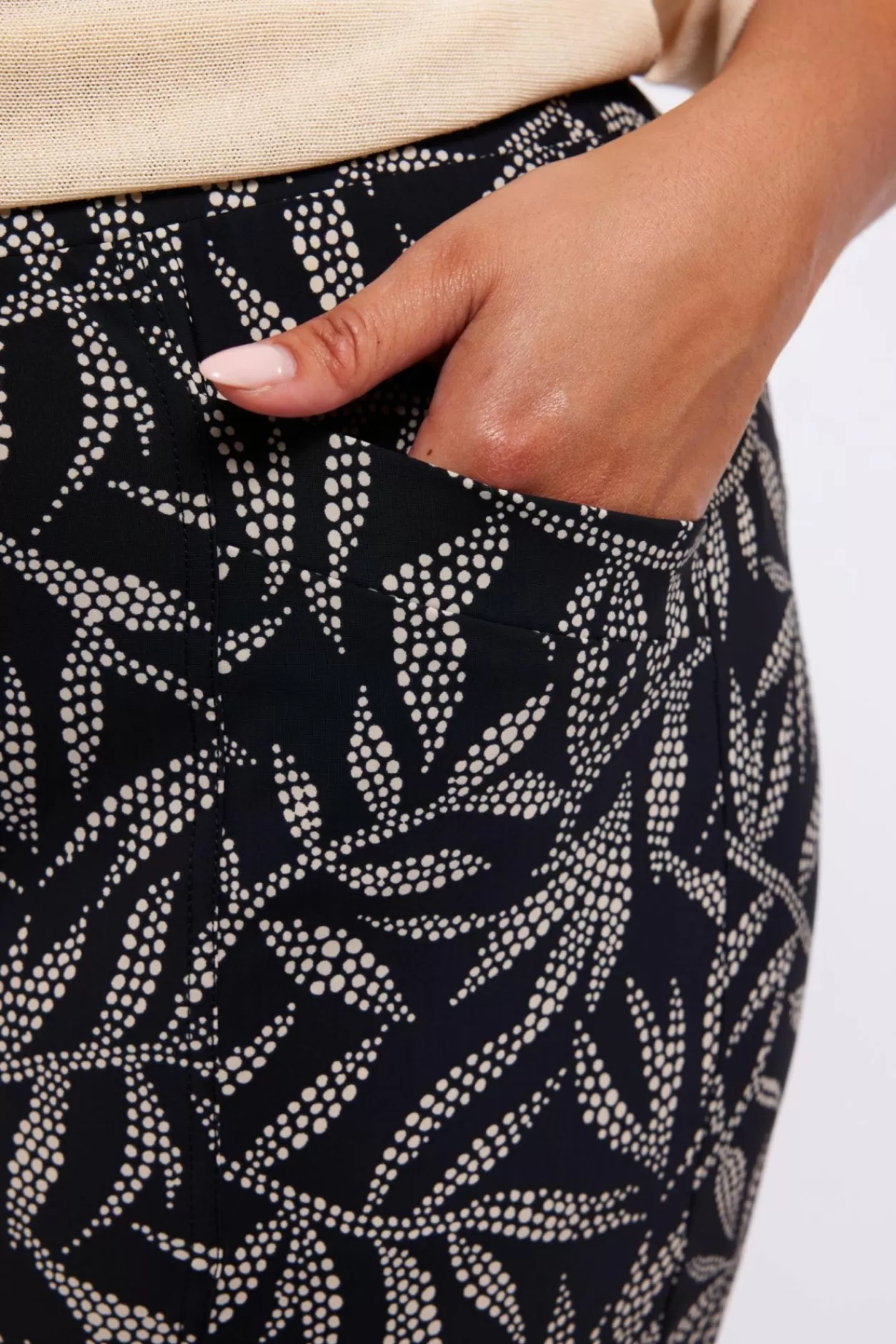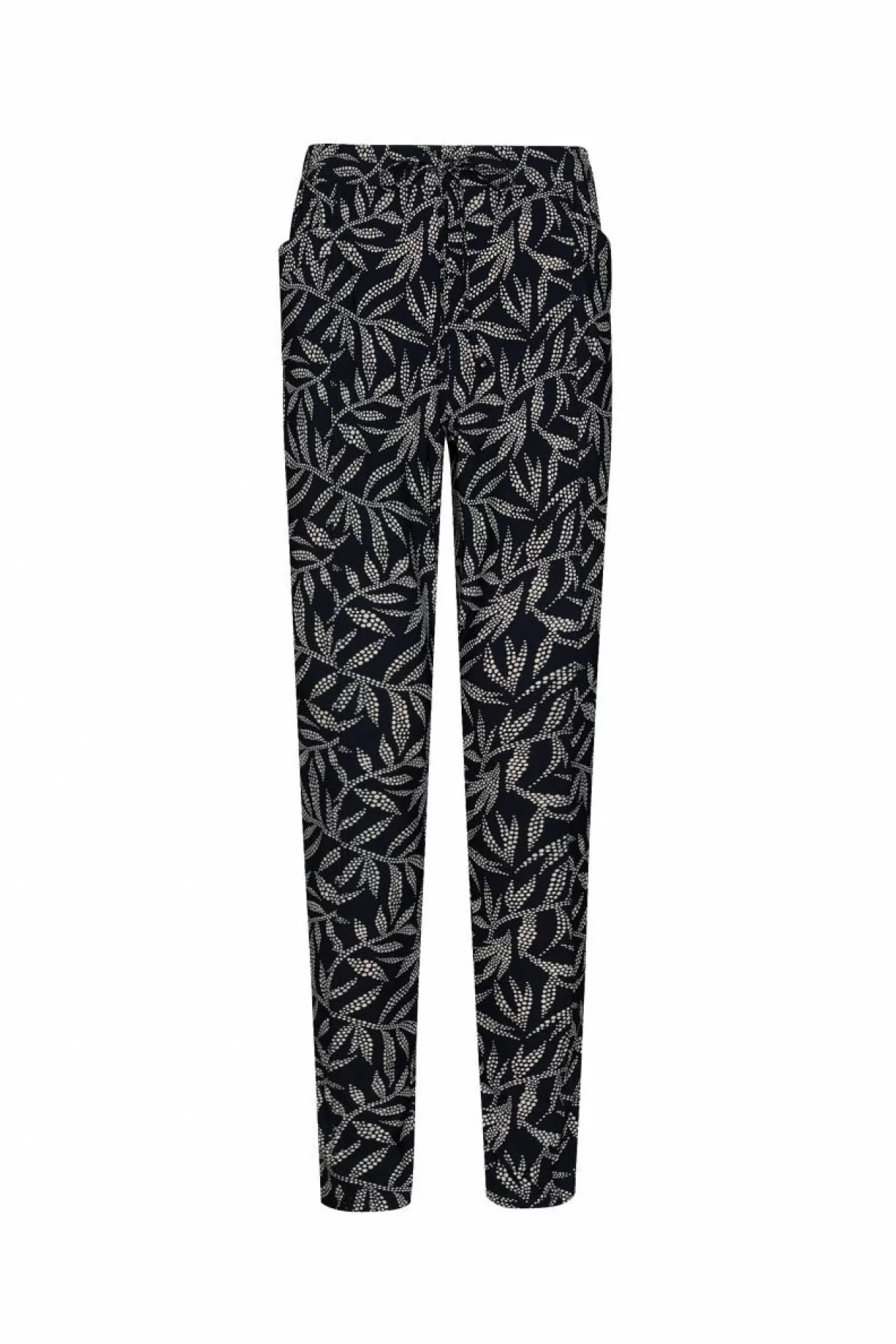 Ga Voor Een Subtiele Najaarsprint Met De Comfortabele Cecile Broek, Gemaakt Van Travel Kwaliteit. De Broek Heeft Een Aanslutiend Model Met Een Striksluiting In De Tailleband En Steekzakken. Style Deze Broek Met De Sam Top Voor Een Complete Set.