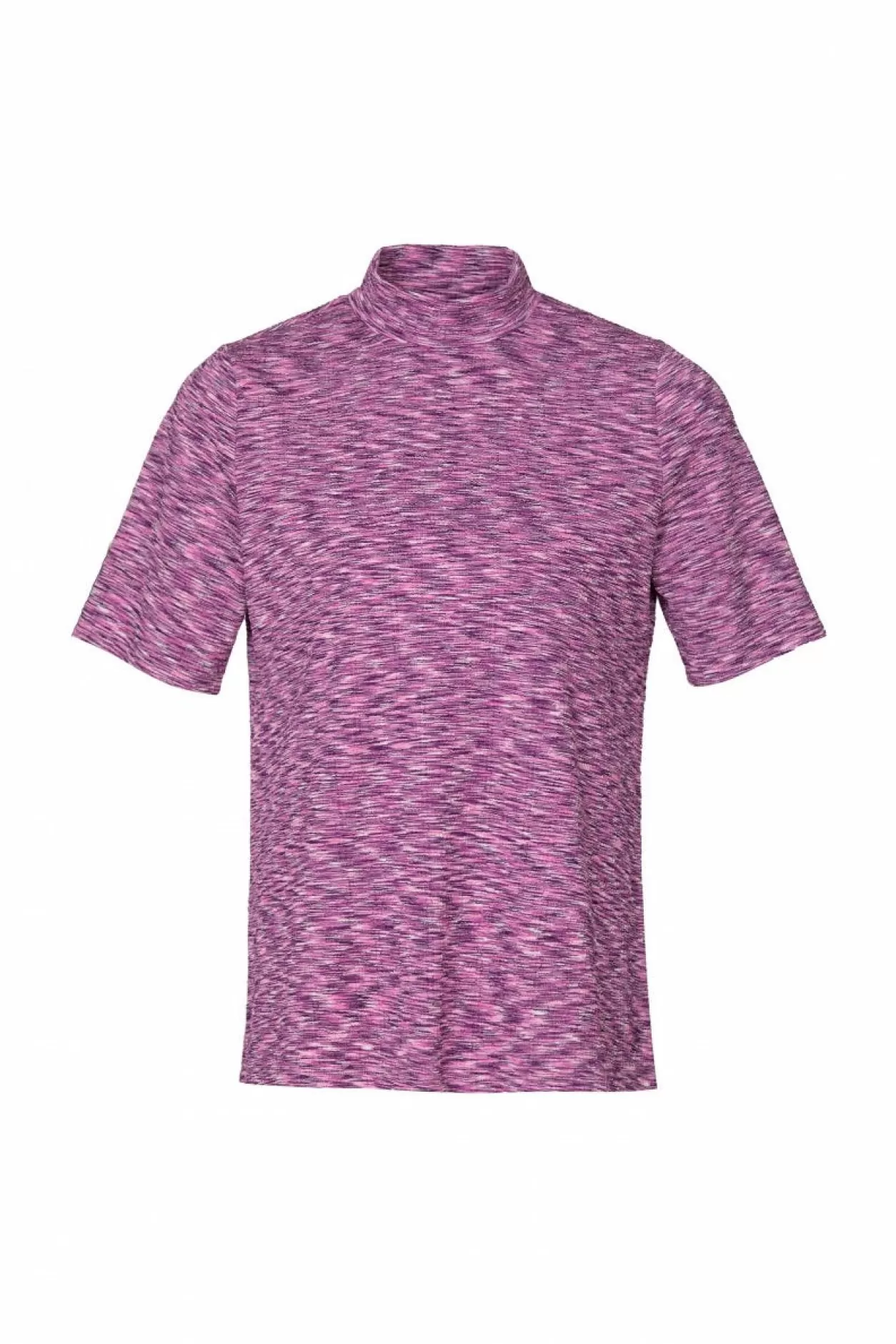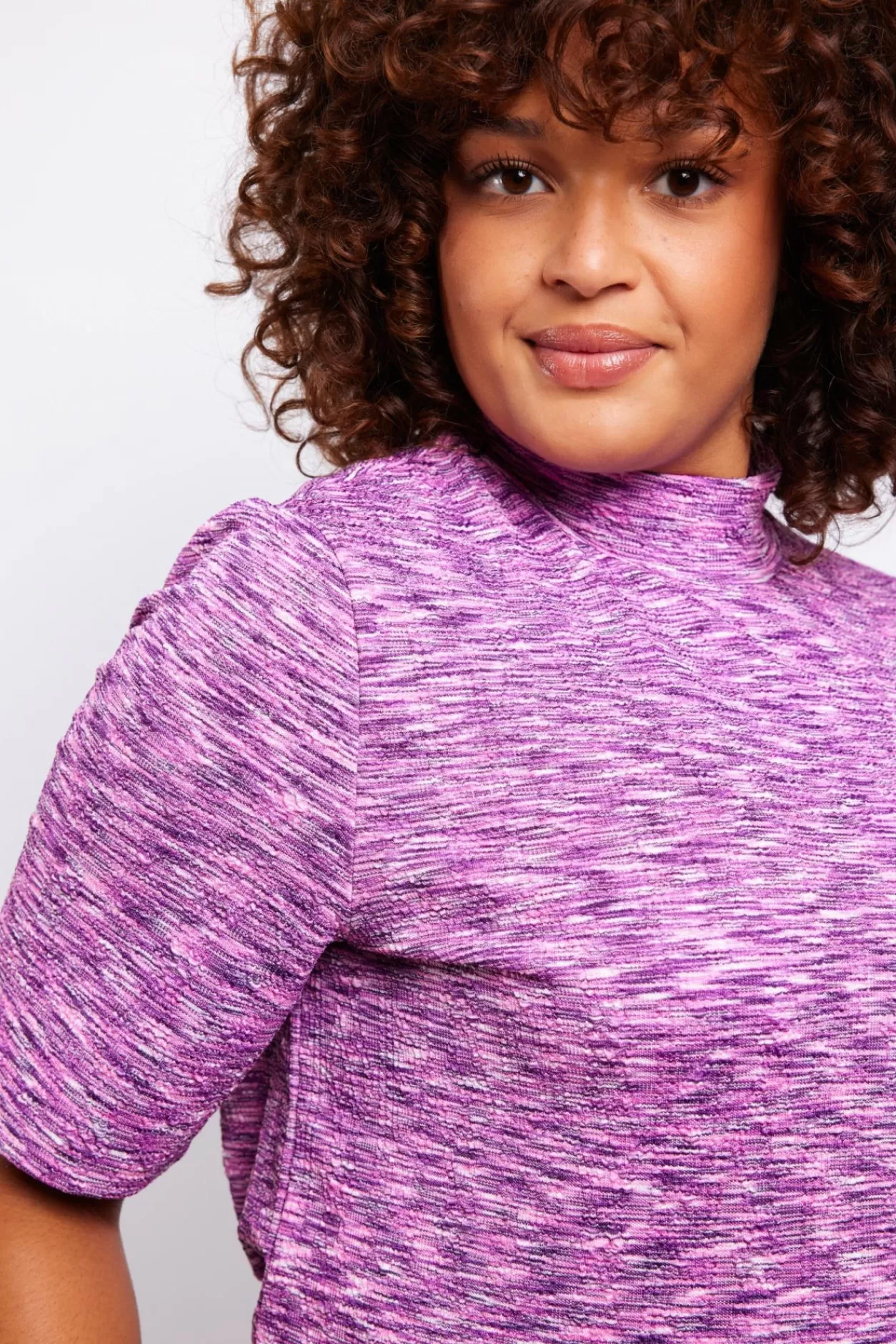Voeg De Roby Top Toe Aan Je Wintergarderobe. Met Een Lage Col, Korte Mouwen En Een Gemêleerde Roze Stof, Is Deze Top De Perfecte Mix Van Comfort En Trendy Uitstraling.Model Is 173 Cm En Draagt Een Maat 44.