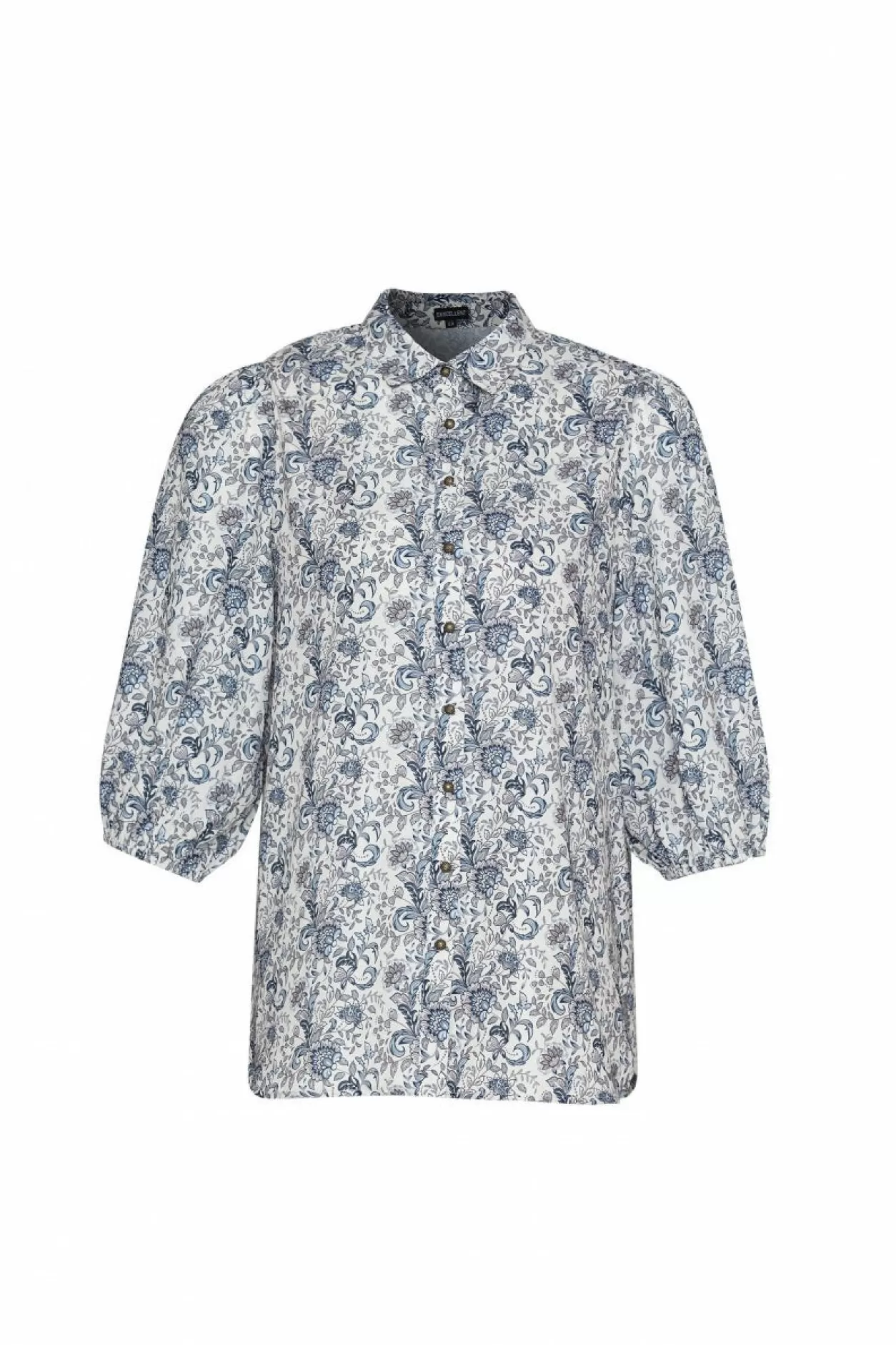Geef Een Frisse Look Aan Je Najaarsoutfit Met De Het Zachte Grijsblauw Van De Babette Blouse. Deze Fijne Blouse Heeft Een Losvallend Model Met Halflange Pofmouwen, Een Knoopsluiting En Een Klassieke Kraag.