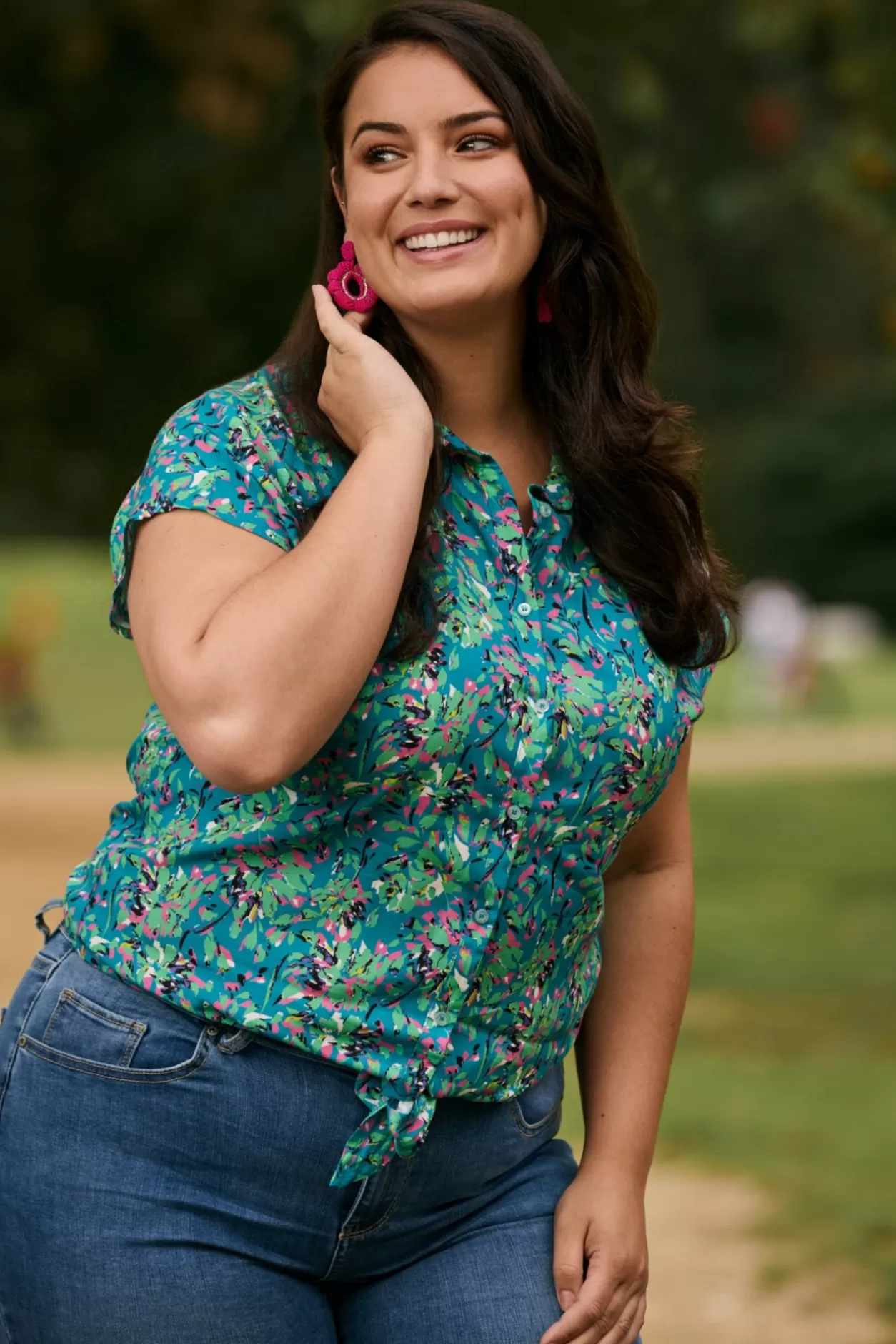 Kies Voor Een Zomerse Look Met Dejetta Blouse. De Gekleurde Print Geeft De Look Een Vrouwelijke En Unieke Uitsltaling. Stijl De Blouse Door Middel Van Het Strikceintuur Aan De Onderkant En Je Ben Ready To Go!