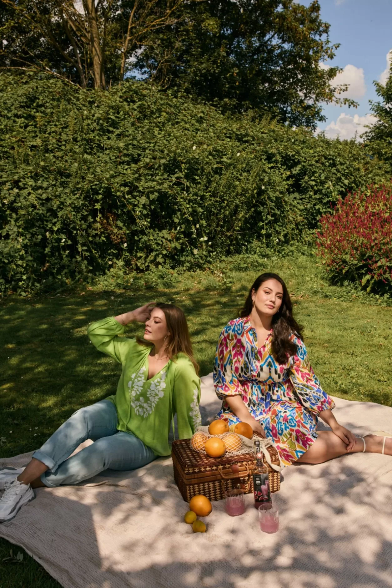 Deze Prachtige Joella Jurk Is Een Aanvulling In Je Zomerse Garderobe. Deze Wijde Jurk Met Hoge Hald Is Gemaakt Van Een Prachtige, Viscose Kwaliteit. Draag Het Zomerse Jurkje In Combinatie Met Heels Of Boots Naar Een Feestelijke Gelegenheid Of Ga Voor Casual En Combineer Het Jurkje Met Een Slipper.