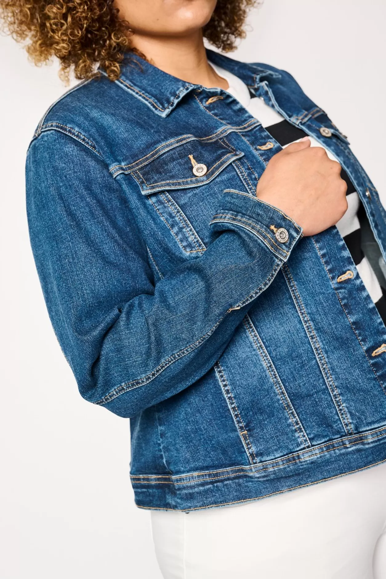 Recht Silhouet – Borstzakken – Verticale Panelen – Stretchdoor De Jaren Heen Is Het Jeansjack Een Absolute Musthave Geworden. Een Item Die Eindeloos Gedragen Kan Worden Op Vrijwel Iedere Print, Kleur Of Stof. Ook Heeft Het Lyza Denim Jacket Een Fijne Stretch Voor Ultiem Draagcomfort. Het Veelzijdige Jack Kan Zowel Open Als Dicht Gedragen Worden En Heeft Klassieke Verticaal Genaaide Panelen.De Lengte Van De Lyza Jacket Is 56 Cm.Model Is 1.79 En Draagt Een Maat 46