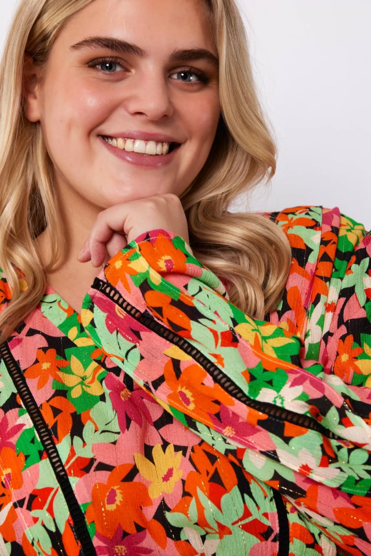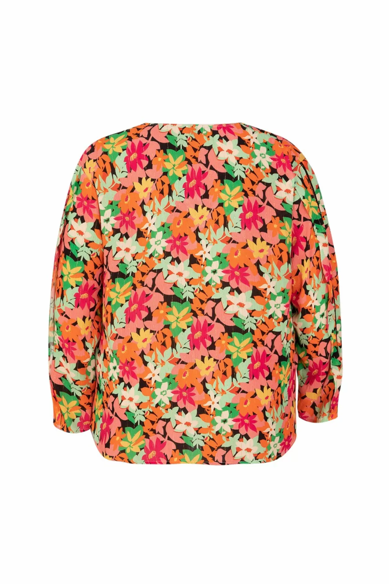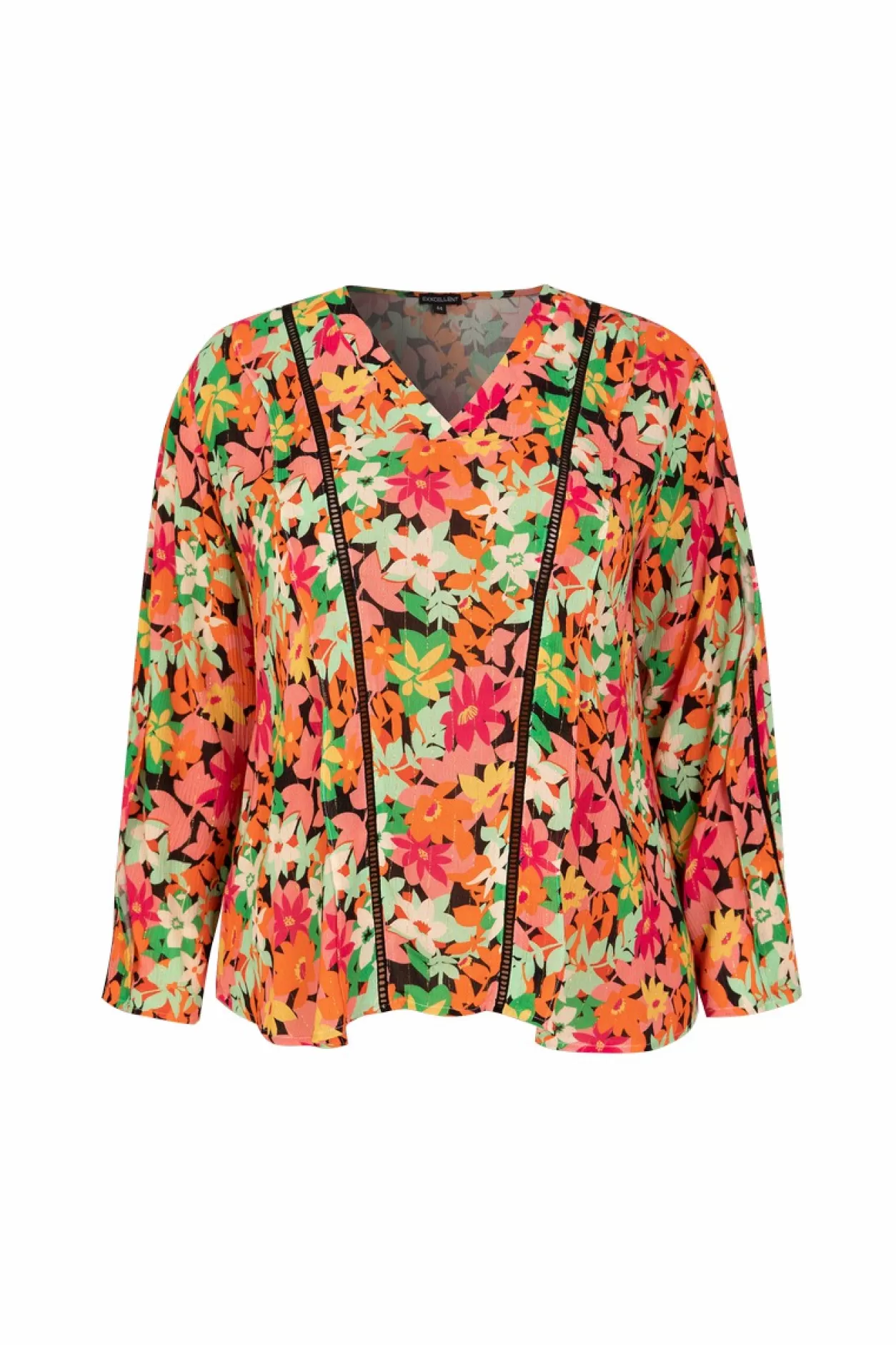 Voeg Kleur Toe Aan Je Lente Garderobe Met De Verine Blouse. Een Vrolijke Keuze Met Een Kleurrijke Bloemenprint En Verfijnde Zwarte Details. De V-Hals Voegt Een Vleugje Vrouwelijkheid Toe, Terwijl De Lange Mouwen Een Tijdloze Charme Bieden.