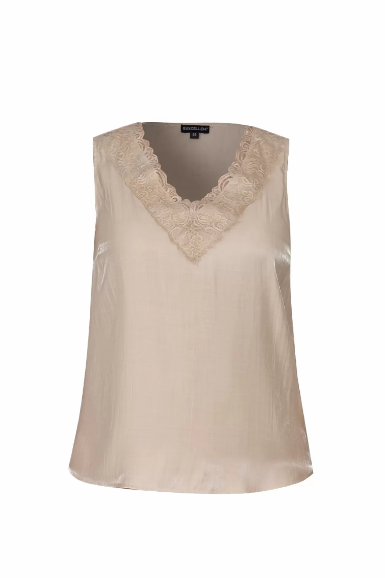 Verrijk Je Look Met Onze Jeanne Top, Een Elegante Mouwloze Top Met Een Delicate Kanten Halslijn.
