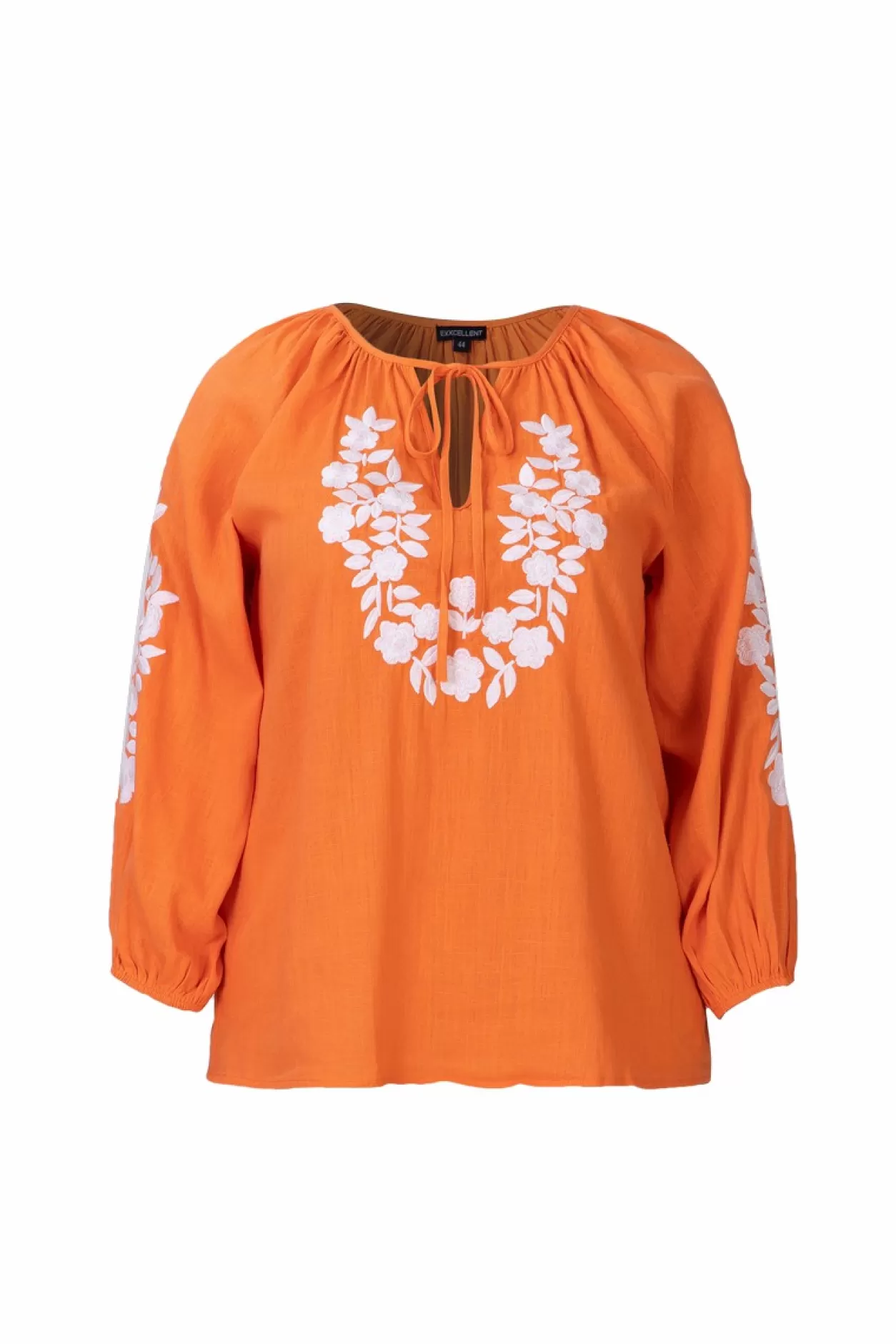 Voeg Een Neutrale Of Felle Kleur Toe Aan Jouw Looks Met De Juul Dames Top. Draag De Top Zakelijk Onder Een Mooi Damespak Of Casual Chic In Combinatie Met Een Jeans En Sneakers. De Top Is Gemaakt Van Katoen En Viscose En Heeft Ene Losvallende Pasvorm. Een Uniek Detail Is Het Borduursel Op De Voorzijde.