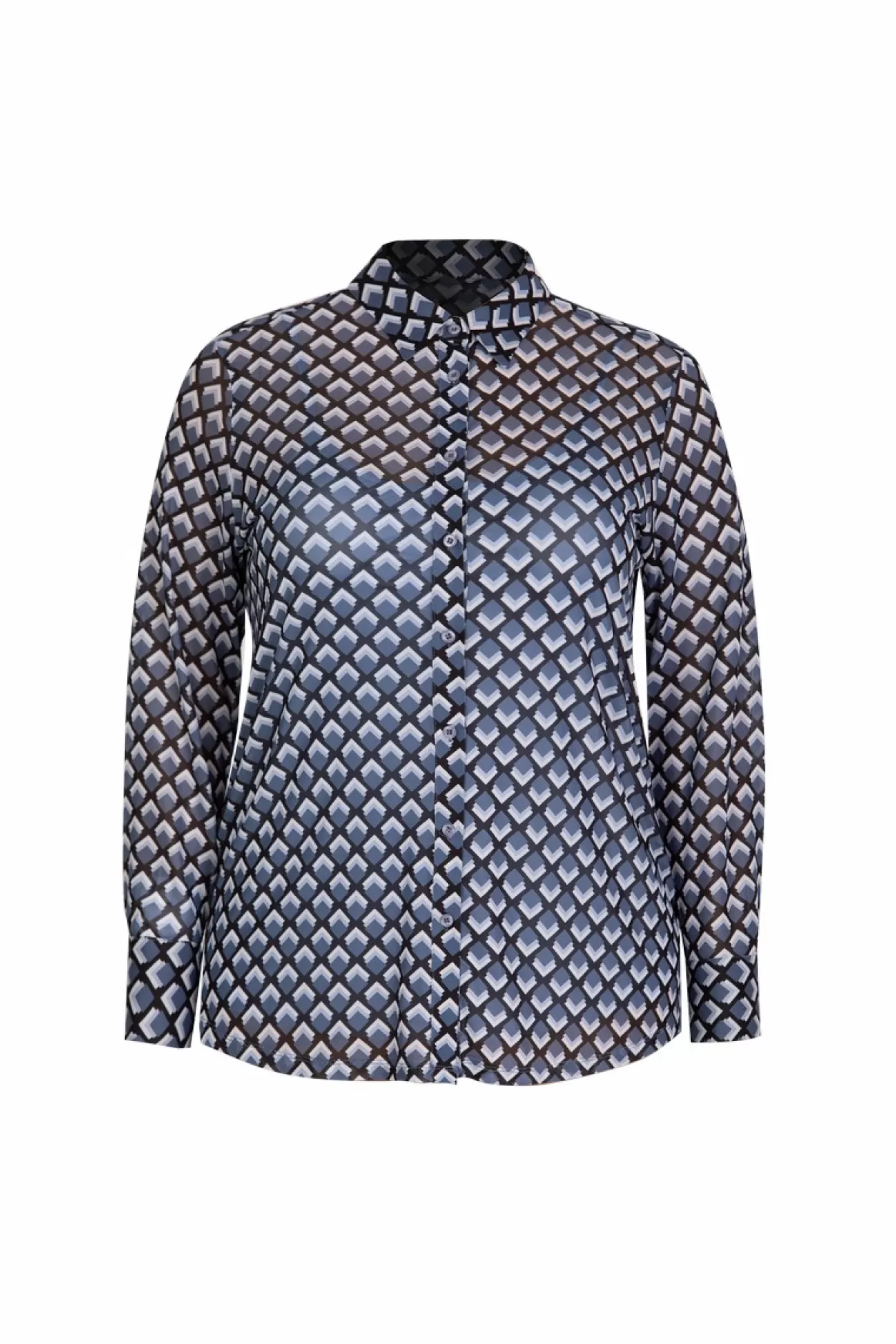 De Abstracte Print Voegt Een Kunstzinnige Touch Toe Aan Deze Klassieke Tiara Blouse Met Een Tijdloze Kraag En Verfijnde Knoopsluiting. Een Essentieel Stuk Dat Elke Garderobe Doet Oplichten.