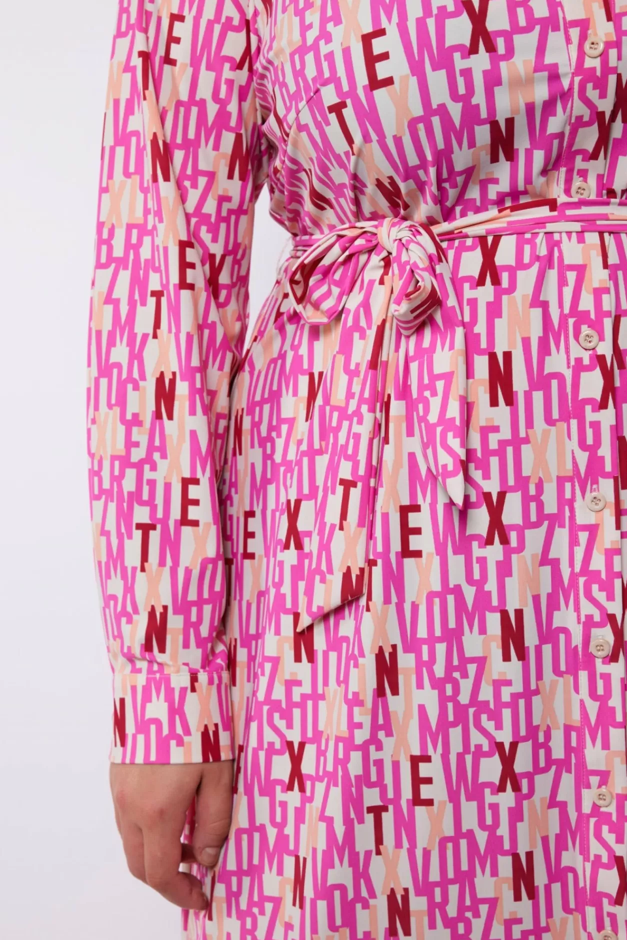 Luidt De Lente In Met Onze Valencia Jurk. Met Een Abstracte Letterprint, Elegante Ceintuur Om De Taille En Klassieke Kraag Is De Valencia Jurk Een Absolute Eyecatcher.