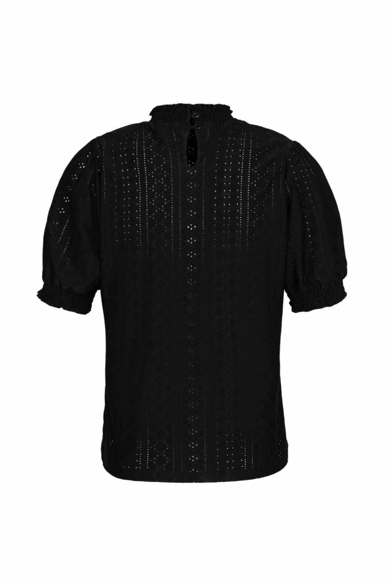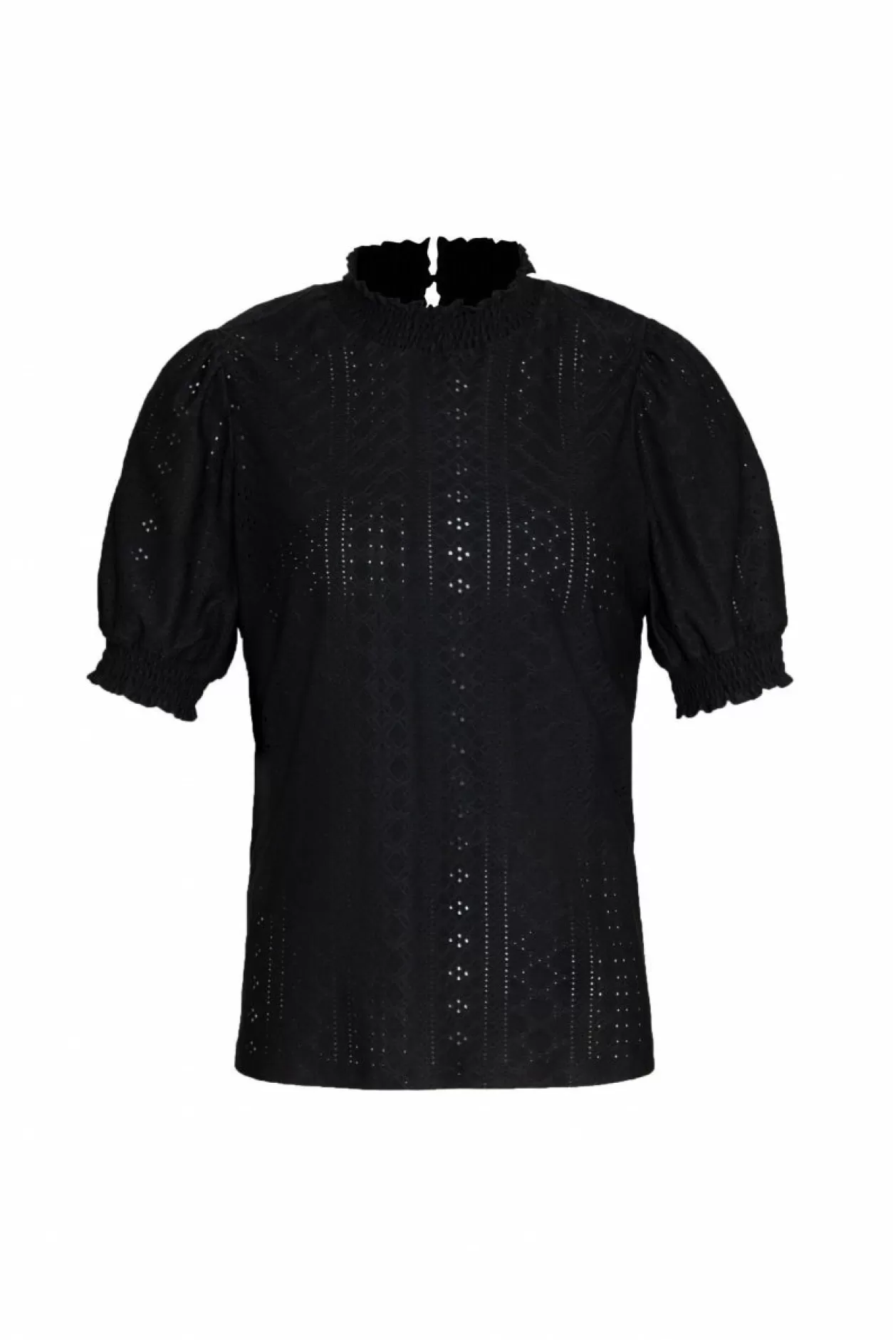 Ga Dit Najaar Voor Een Romantische Look Met De Geborduurde Annelou Top. Deze Top Heeft Een Recht Model Met Een Gesmockt Kraagje En Korte Pofmouwtjes.