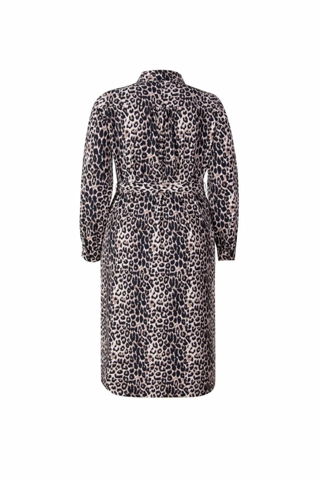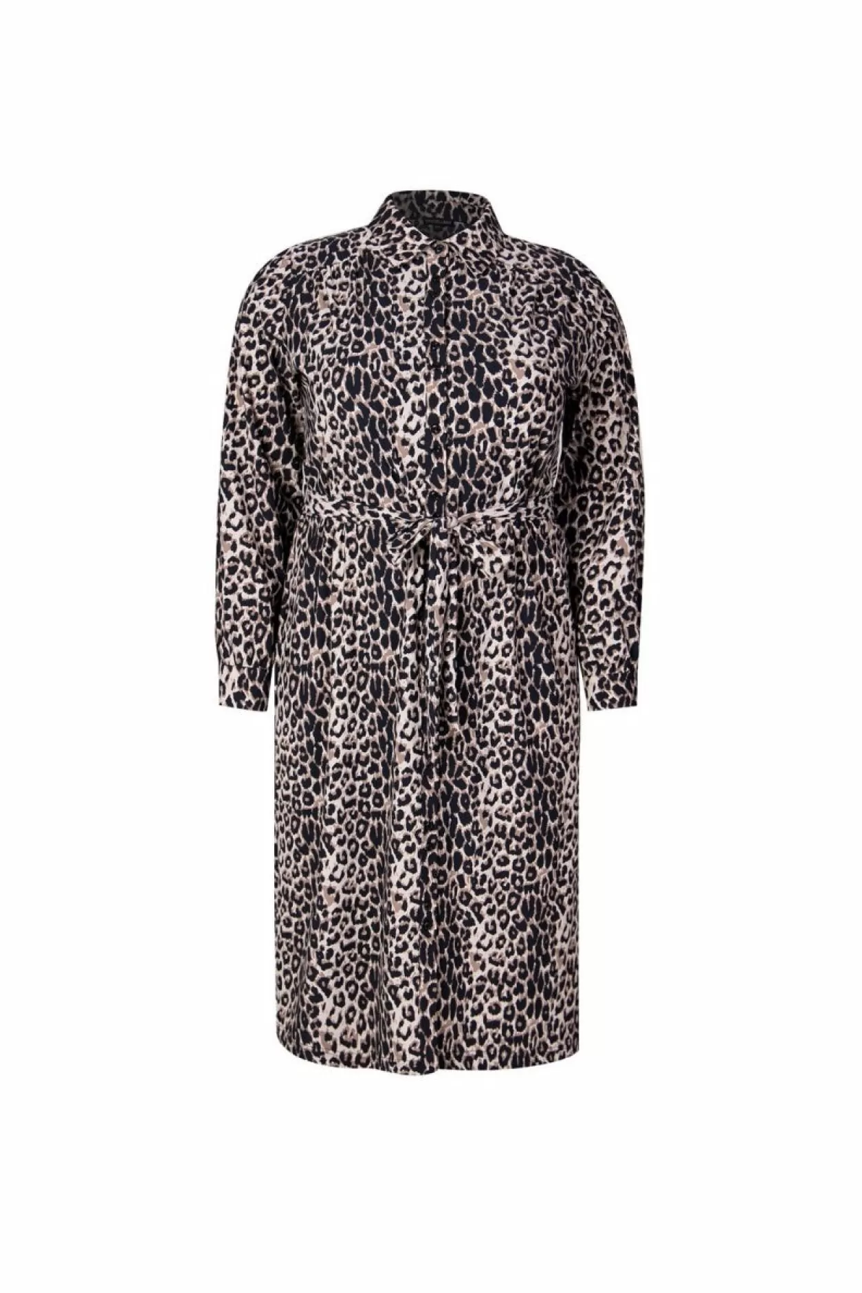 De Florine Jurk Met Dierenprint Is Een Absolute Blikvanger Die Je Garderobe Verfraait Met Een Vleugje Wilde Schoonheid. Met Zijn Betoverende Dierenprint, Elegante Midi-Lengte En Ceintuur Om De Taille, Combineert Deze Jurk Moeiteloos Stijl En Comfort.