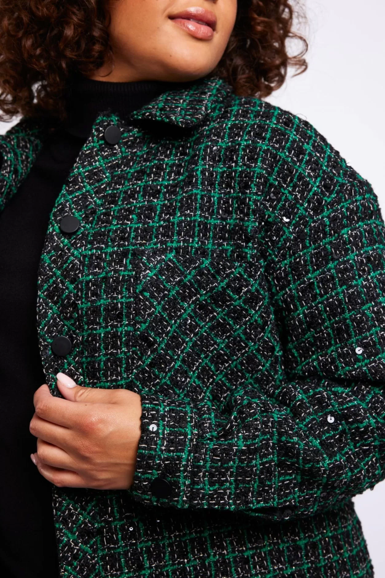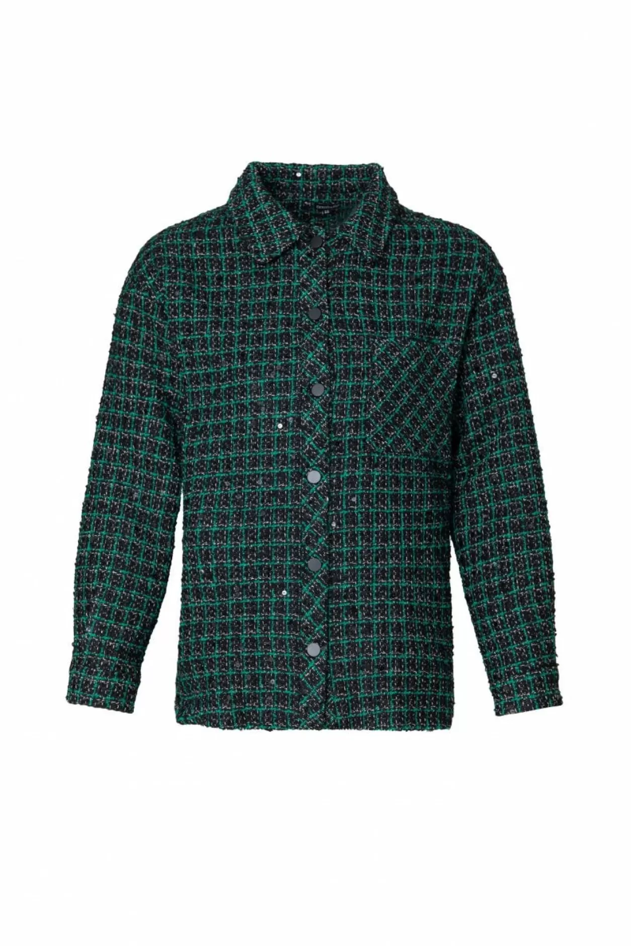 Ontdek De Eenvoudige Elegantie Van De Rana Jacket, Gemaakt Van Tweet Stof. Met Zwarte Drukknoopsluiting, Klassieke Kraag En Borstzak, Voegt Deze Jas Stijl En Praktisch Gemak Toe Aan Je Look. Perfect Voor Dagelijkse Outfits En Een Feestelijke Touch.Model Is 173 Cm En Draagt Een Maat 44.