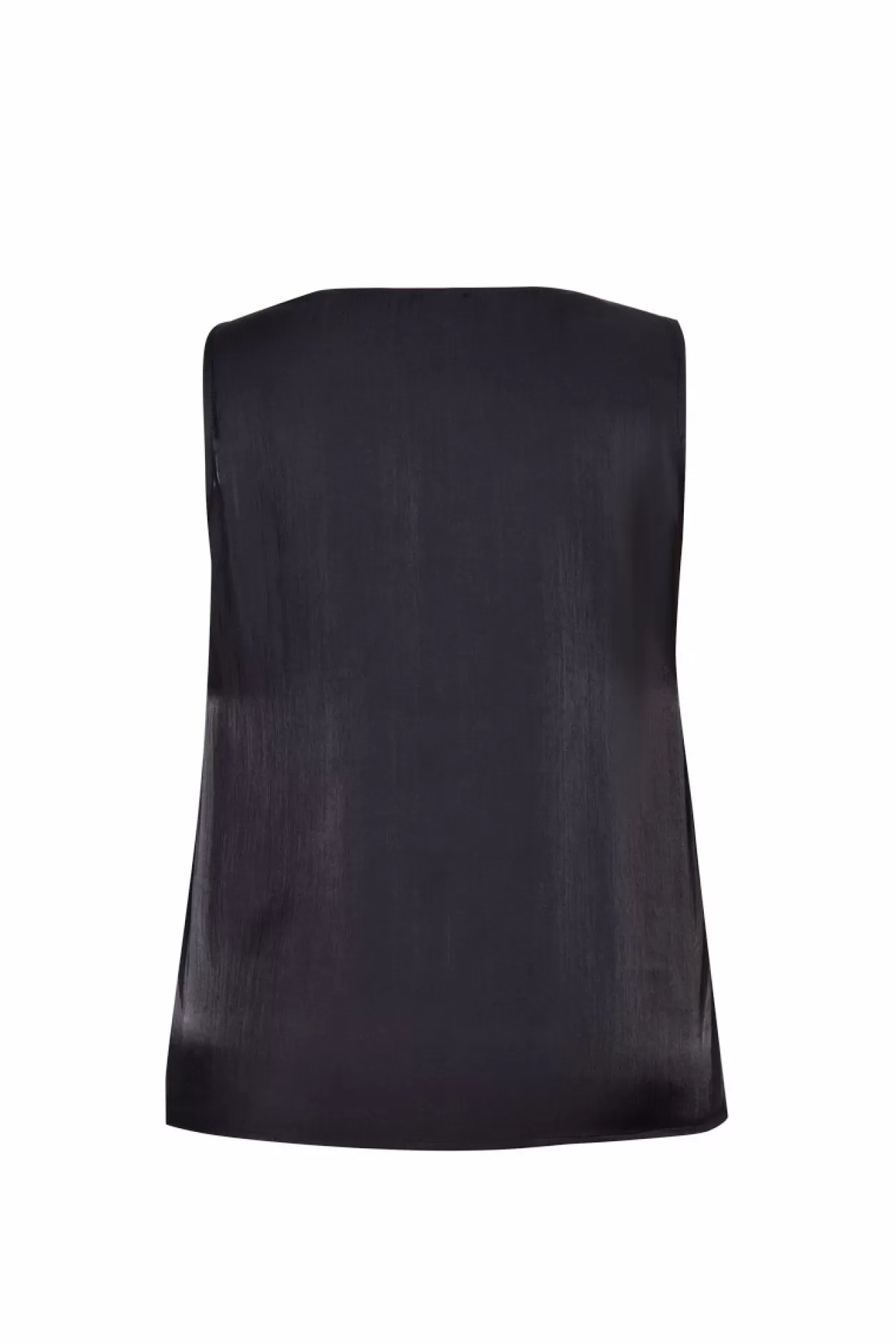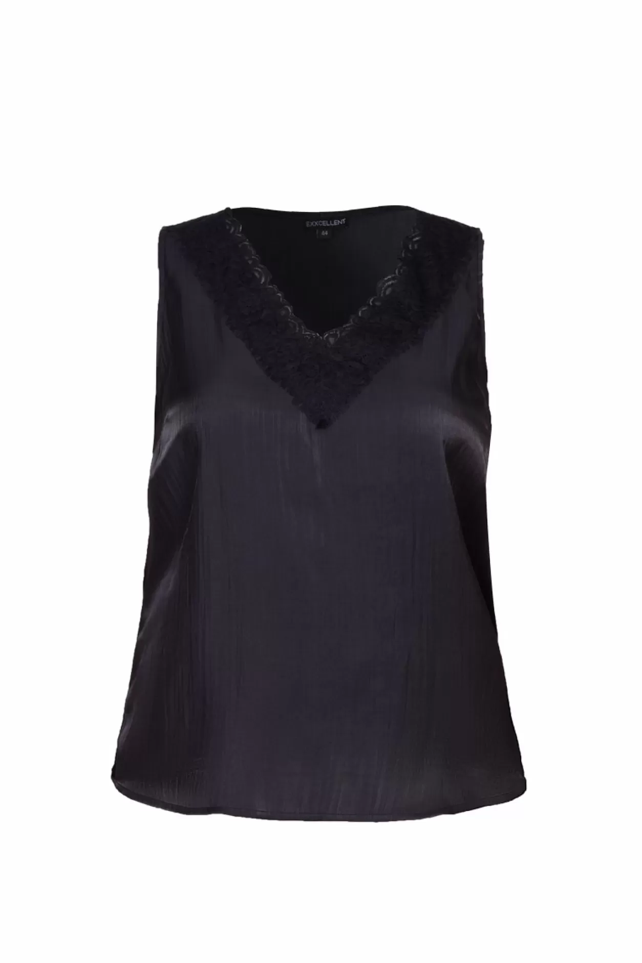 Verrijk Je Look Met Onze Jeanne Top, Een Elegante Mouwloze Top Met Een Delicate Kanten Halslijn.
