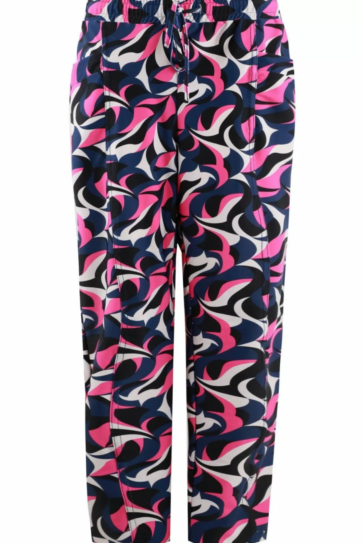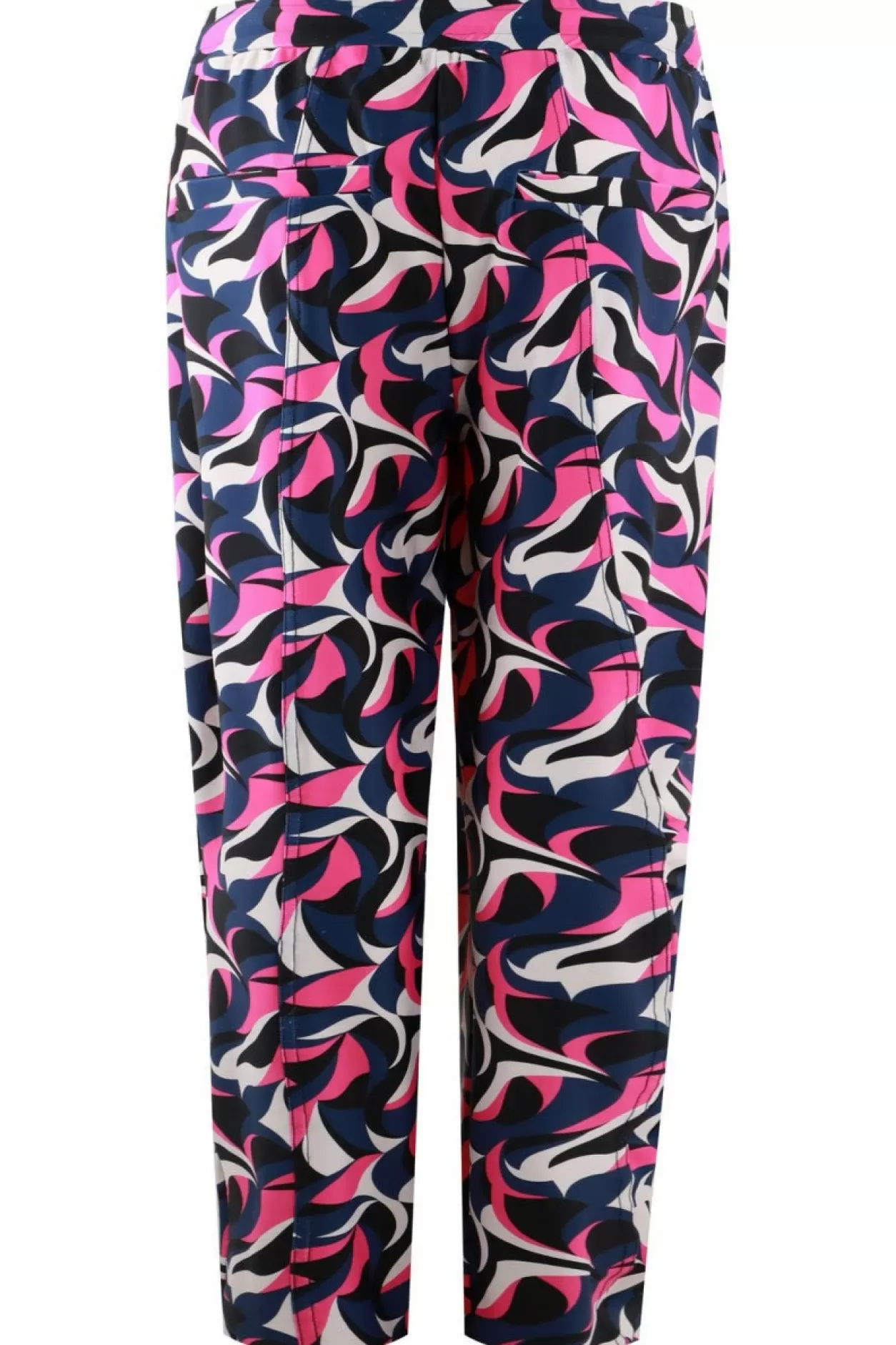 Ga Op Reis In Stijl Met Onze Felize Broek, Gemaakt Van Comfortabele Travelstof En Verfraaid Met Een Opvallende Abstracte Print. Het Toegevoegde Strikkoord Biedt De Perfecte Pasvorm Voor Jouw Comfort. Of Je Nu Op Reis Gaat Of Je Dagelijkse Routine Doorloopt, Deze Broek Combineert Moeiteloos Comfort En Stijl Voor Een Onvergetelijke Look Waar Je Ook Gaat. Model Is 173 Cm En Draagt Een Maat 44.