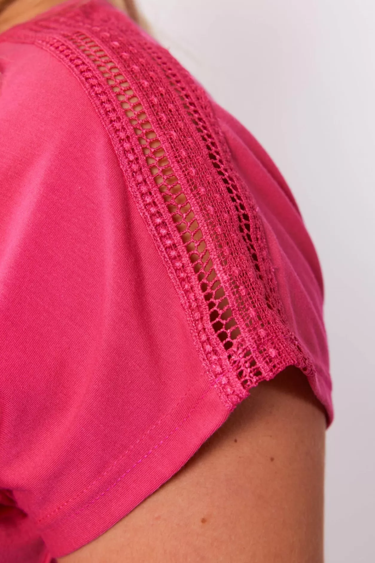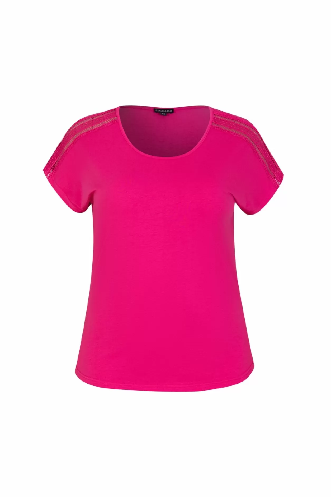 De Gitta Top Is Een Mooie Basic Met Opengewerkte Details Op De Mouwen.