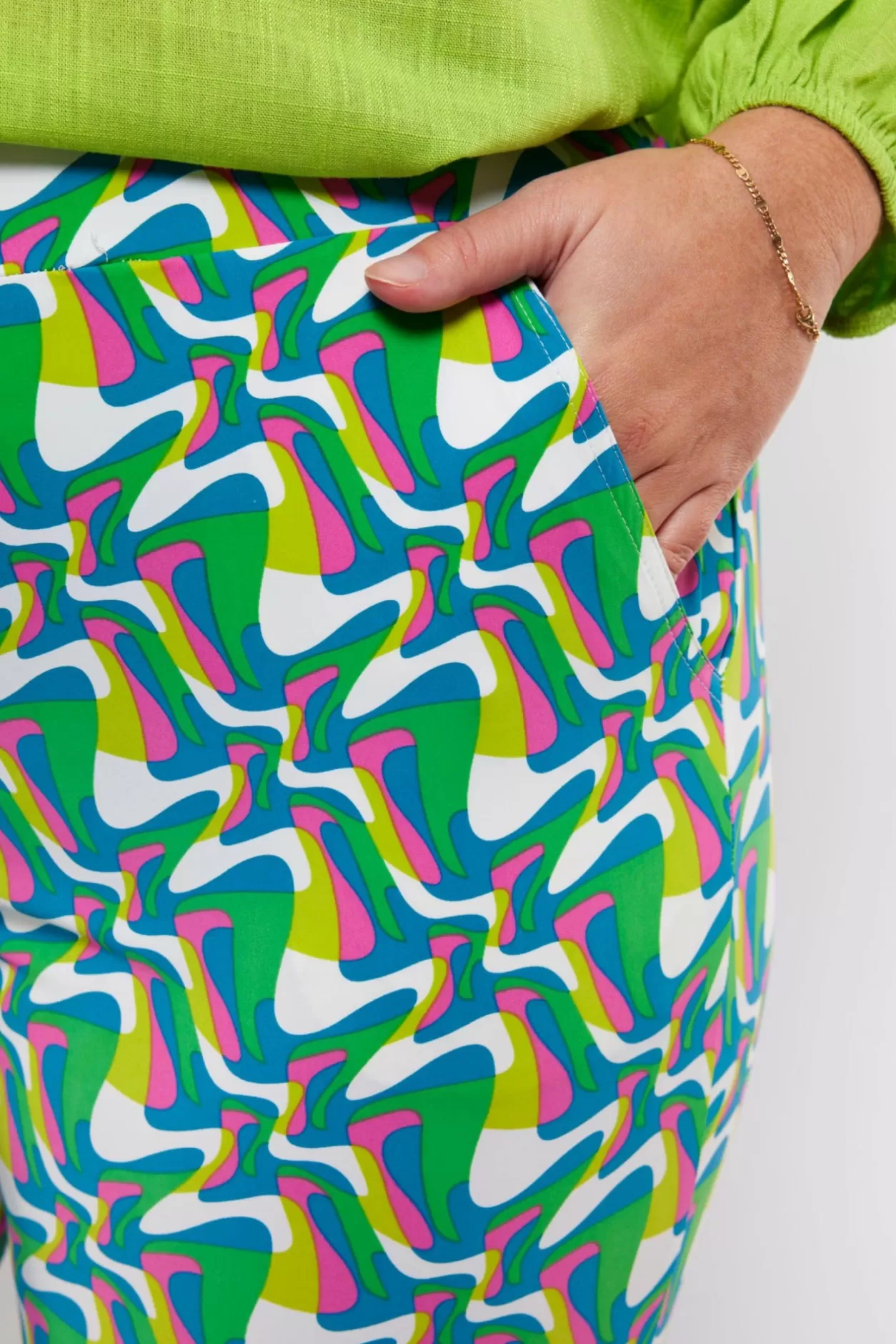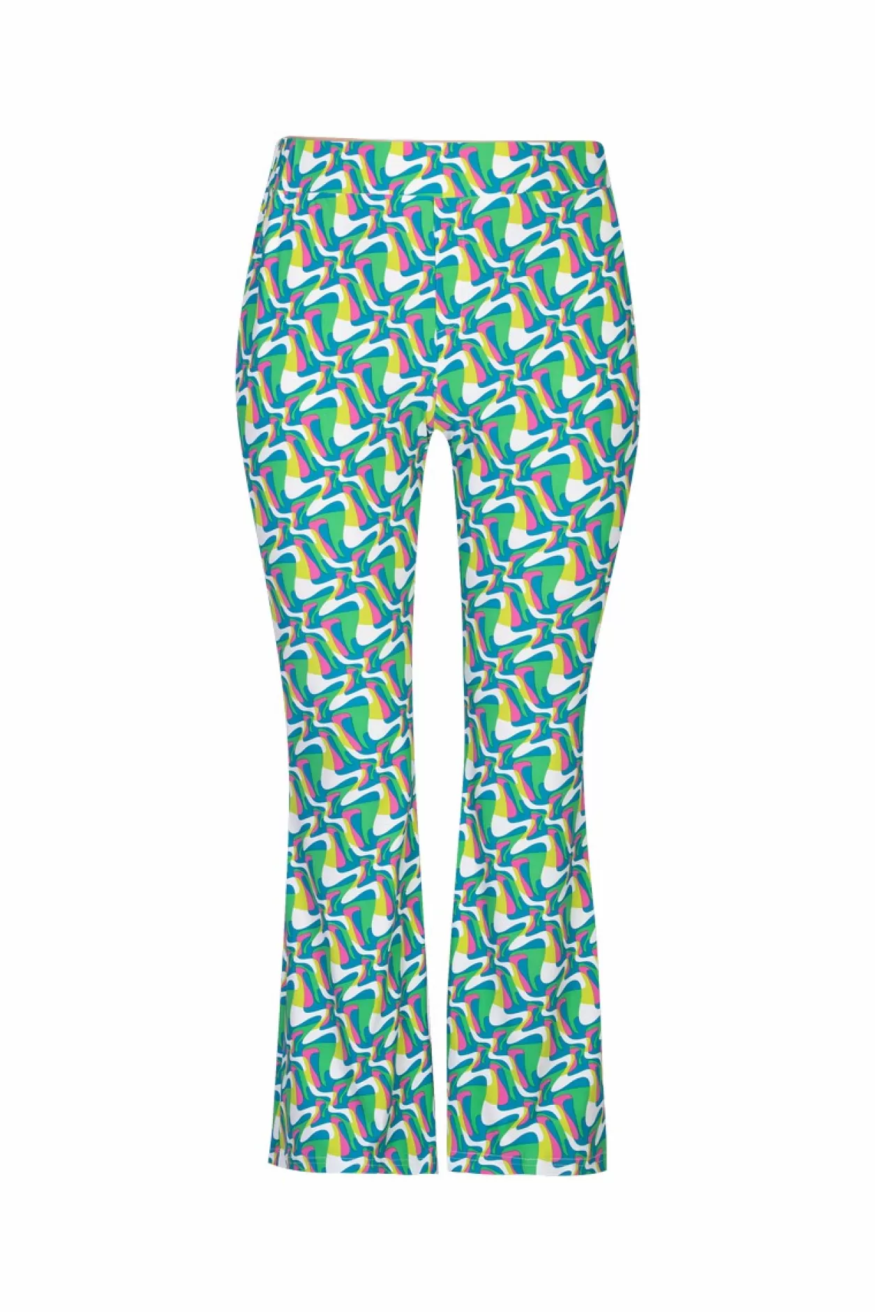 De Jade Dames Broek, Is Gemaakt Van Een Comfortabele Kwaliteit.Met Een Flared Leg En Een High Waist Taille Biedt Deze Broek Niet Alleen Een Mooie Look Maar Ook Draagcomfort. De Broek Is Voorzien Van Een Unieke Print Voor Een Eye-Catching Uitstraling. Combineer De Flared Broek Met De Bijpassende Lori Blazer Of Jagger Top Voor Een Compleet, 3-Delig Pak.