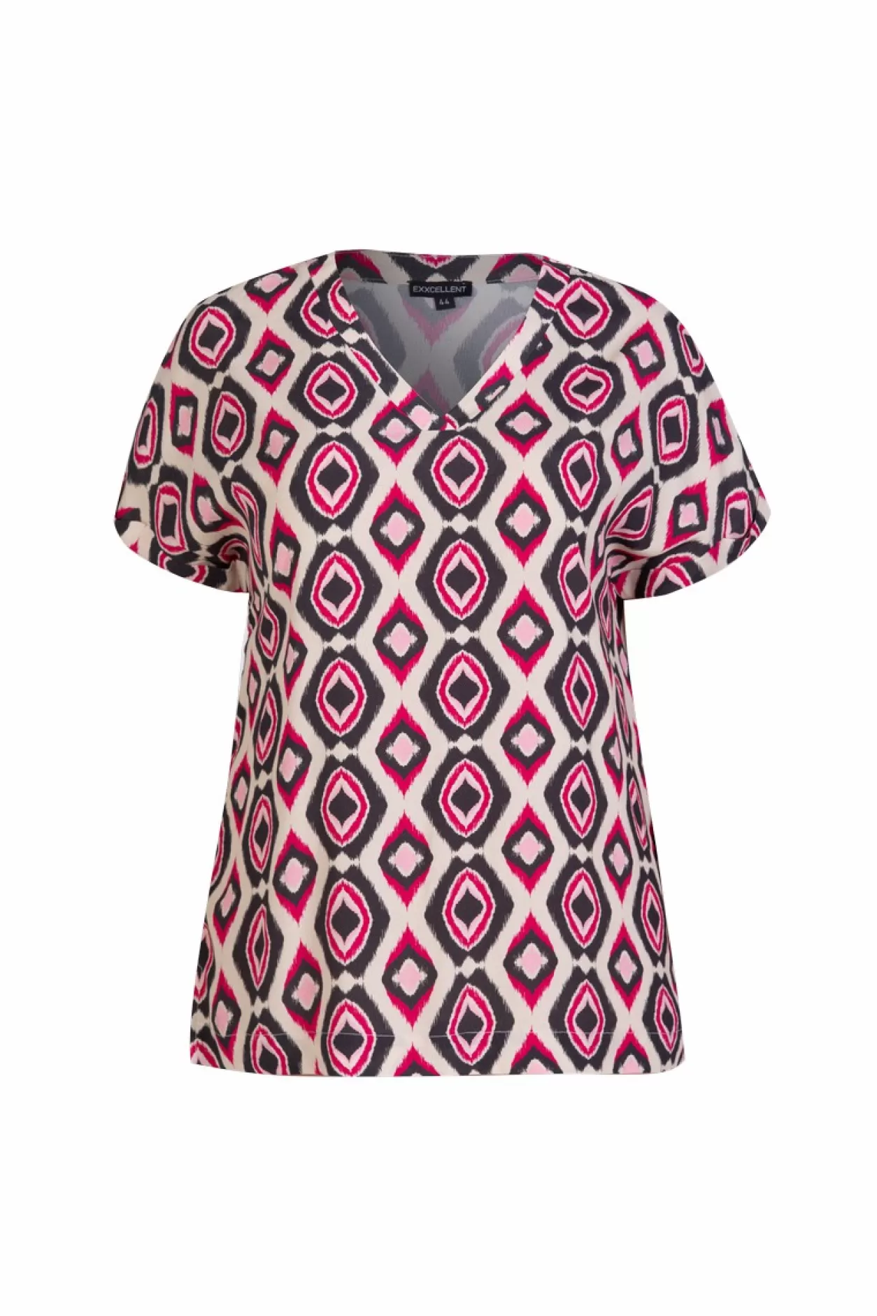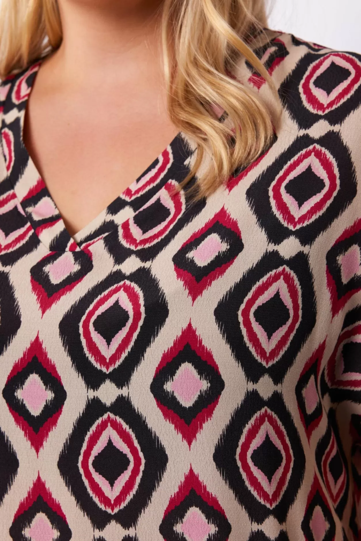 De Rowena Top Heeft Een V-Hals En Een Grafische Print. Het Model Is 175Cm Lang En Draagt Maat 46.Materiaal: 100% Viscose