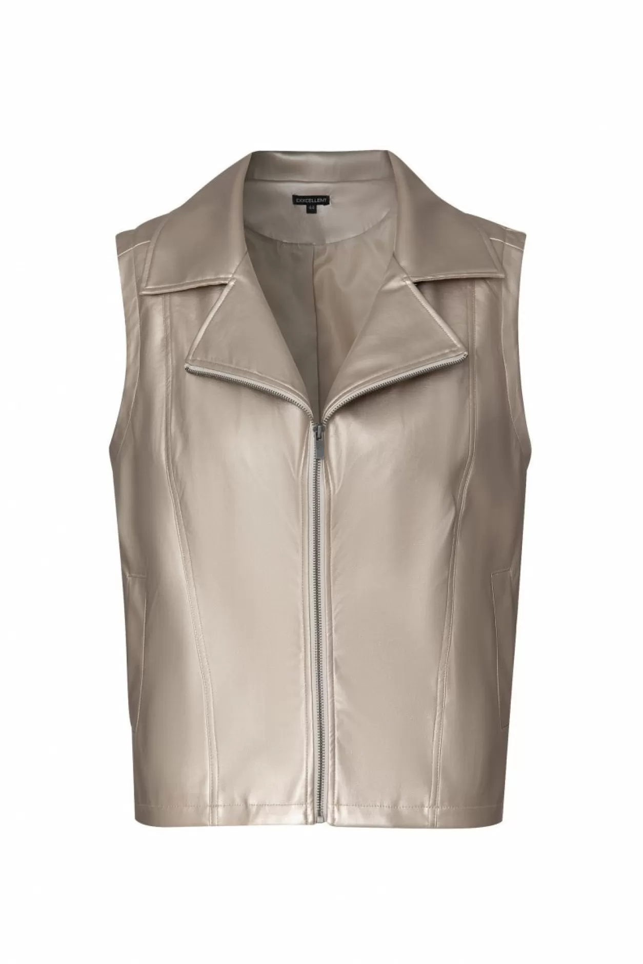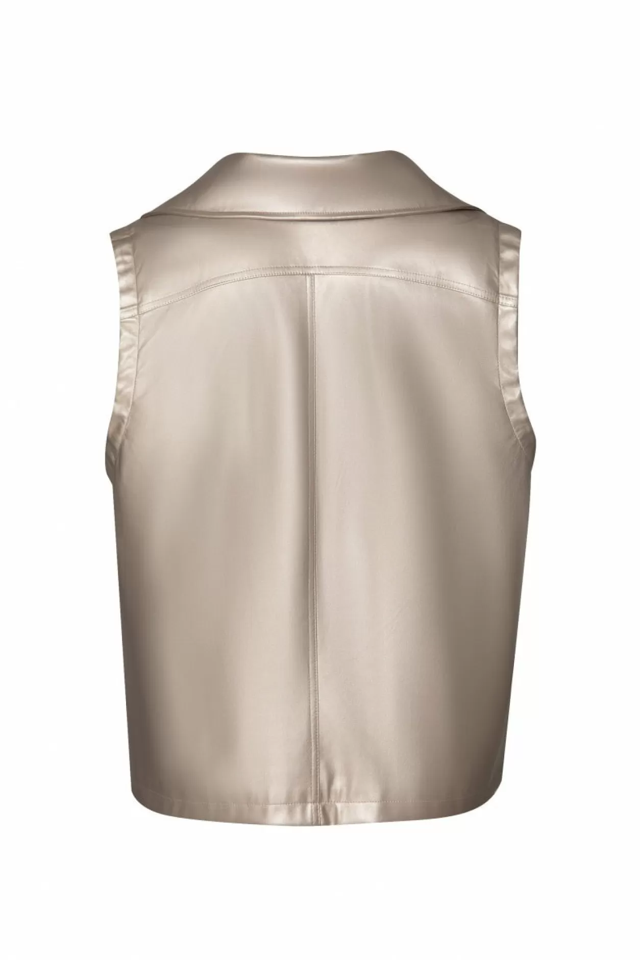 De Talitha Gilet, Gemaakt Van Faux Leer En Uitgevoerd In Een Metallic Zandkleur, Straalt Stoerheid Uit En Vormt De Perfe…