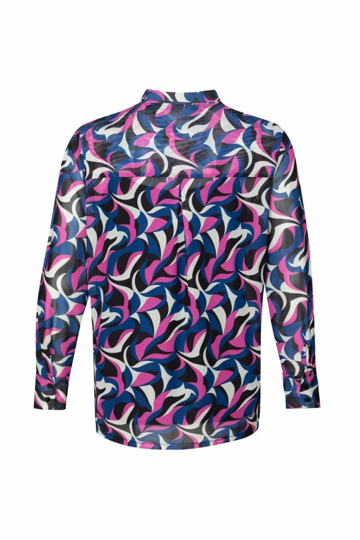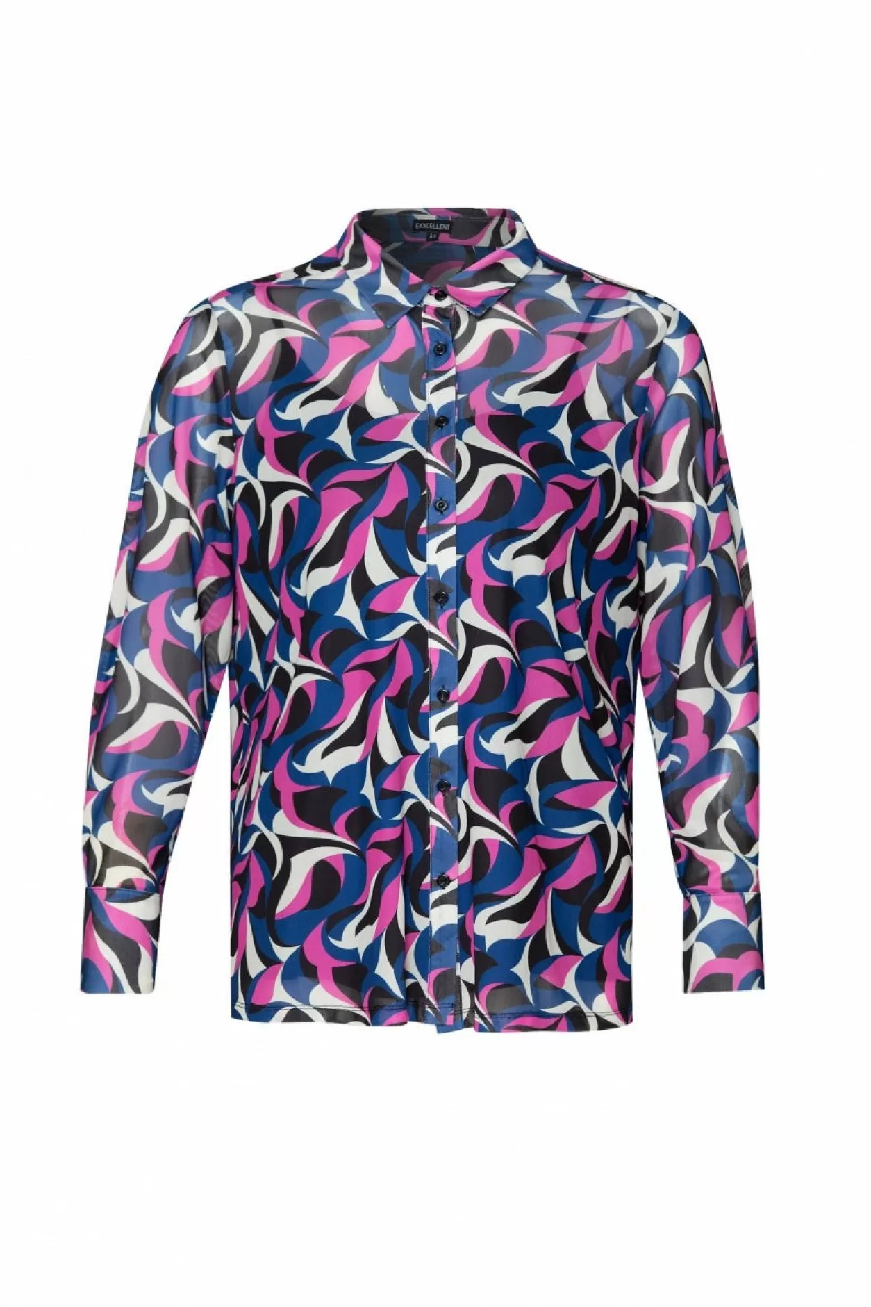 Verken De Wereld Van Verfijnde Stijl Met Onze Abstracte Tiara Mesh Blouse, Samen Met Een Elegante Zwarte Onder Top En Knoopsluiting. Laat Jezelf Stralen In Deze Unieke En Vrolijke Toevoeging Aan Je Wintergarderobe. Model Is 173 Cm En Draagt Een Maat 44.