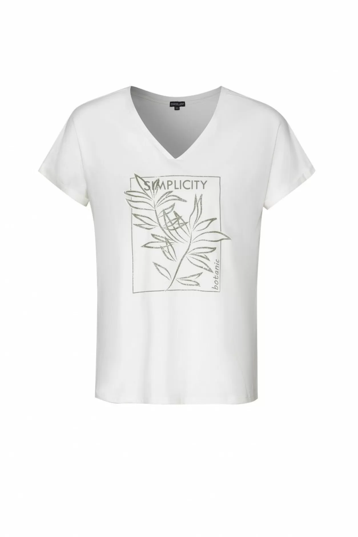 Vul Jouw Basis Garderobe Aan Met Het Fijne Marja T-Shirt, Dat Een Hoog Draagcomfort Heeft Door De Samenstelling Van Katoen Met Elastaan. Het T-Shirt Heeft Een Losvallend Model Met Korte Mouwen En Een V-Hals.