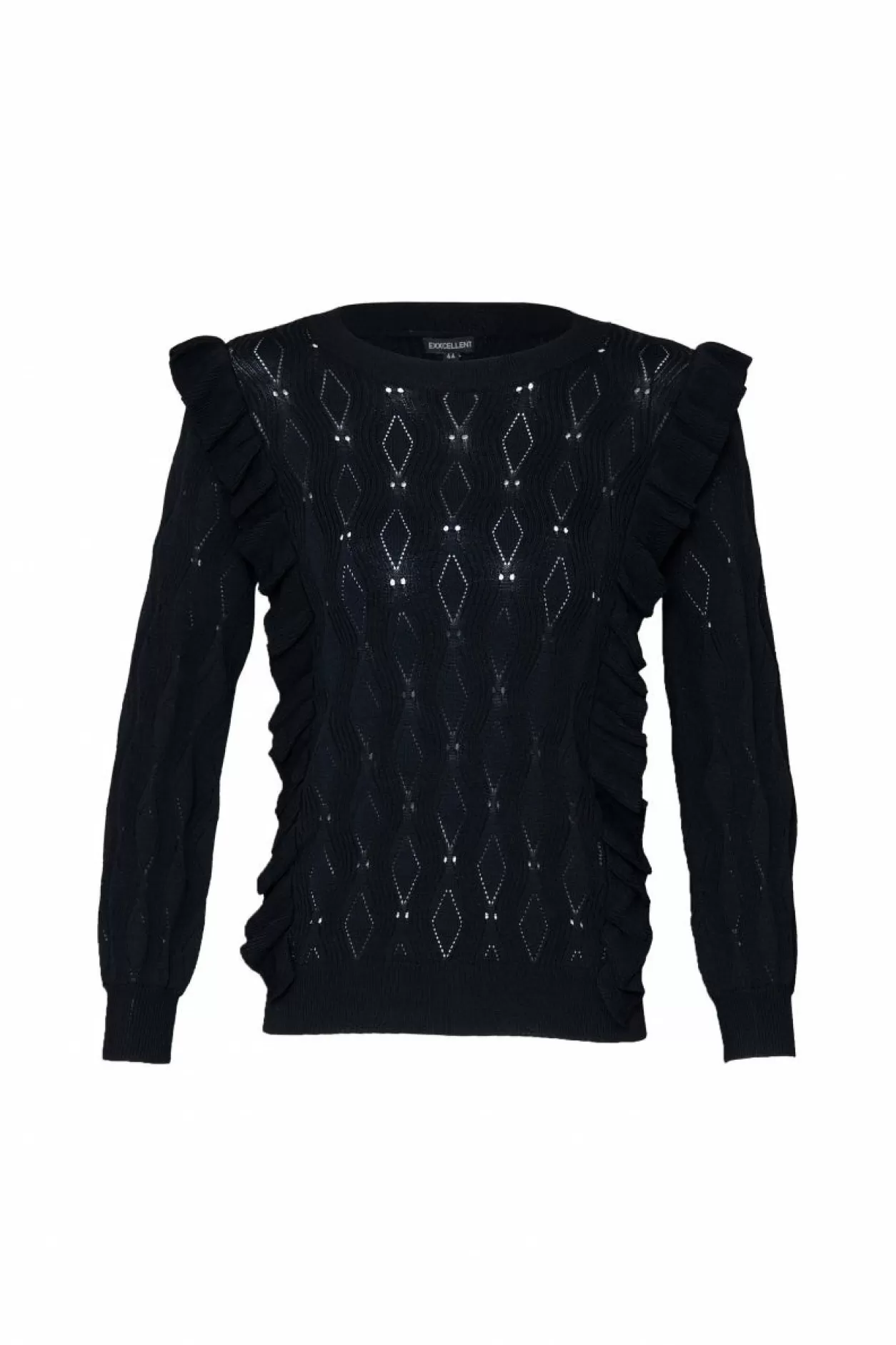 Voel De Romantiek In Onze Aubrey Trui, Een Charmante Trui Die Ruffles En Een Delicaat Opengewerkt Motief Combineert. De …