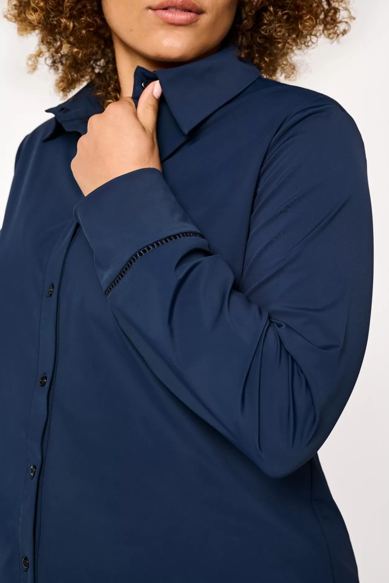 Comfortabele Fit – Klassieke Kraag – Decoratieve Details – Travelstofde Laila Blouse Is Een Klassieker Onder De Tops. De Decoratieve Gaatjes Rondom De Polsband Maken Deze Basic Van Travelstof Een Uniek Item. De Licht Getailleerde Fit Zorgt Voor Een Vrouwelijk Figuur En De Klassieke Kraag Met Knoopjes Aan De Voorzijde Maken De Blouse Een Tijdloos Item.Model Is 1.79 En Draagt Een Maat 46